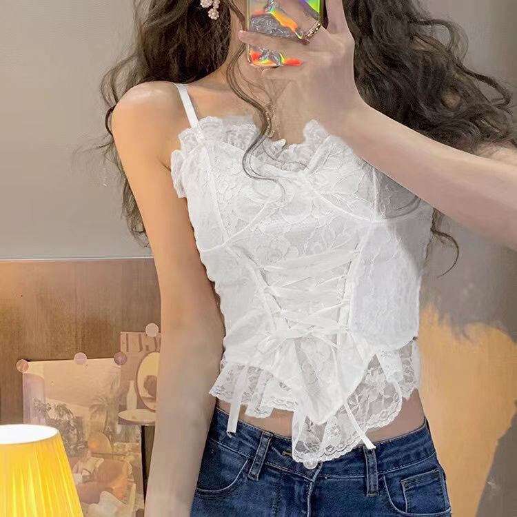 レース付きでオシャレ感をアップ、インナーとしてもトップスとしても着られる