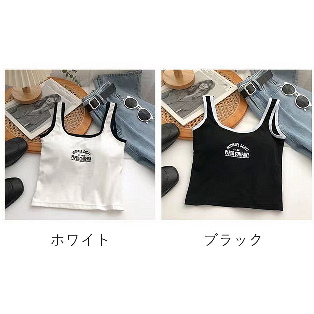 カップ付き タンクトップ白黒 レディース