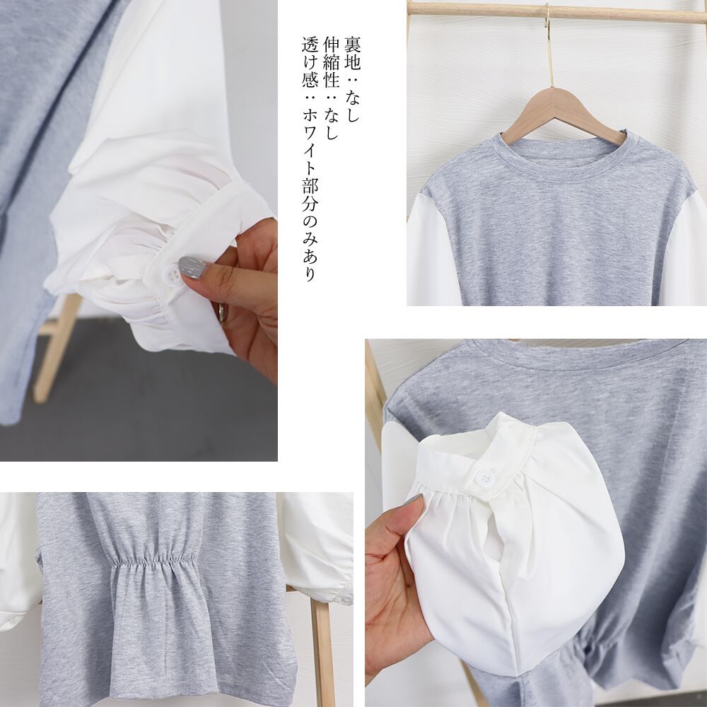 ゆるっとした異素材を切り替えたボリューム袖トップスです
