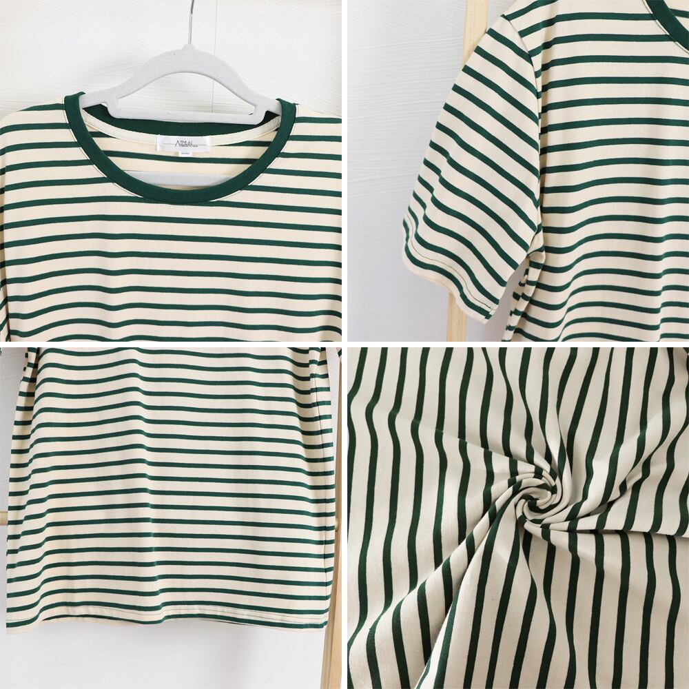 夏服ラウンドネック ボーダー服 可愛い 韓国ファッション