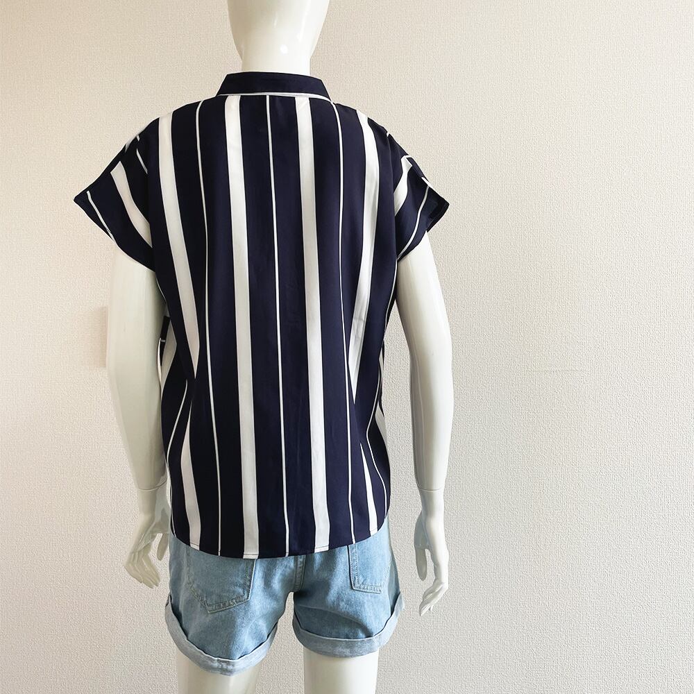 ストライプ柄 開襟シャツ レディース 夏