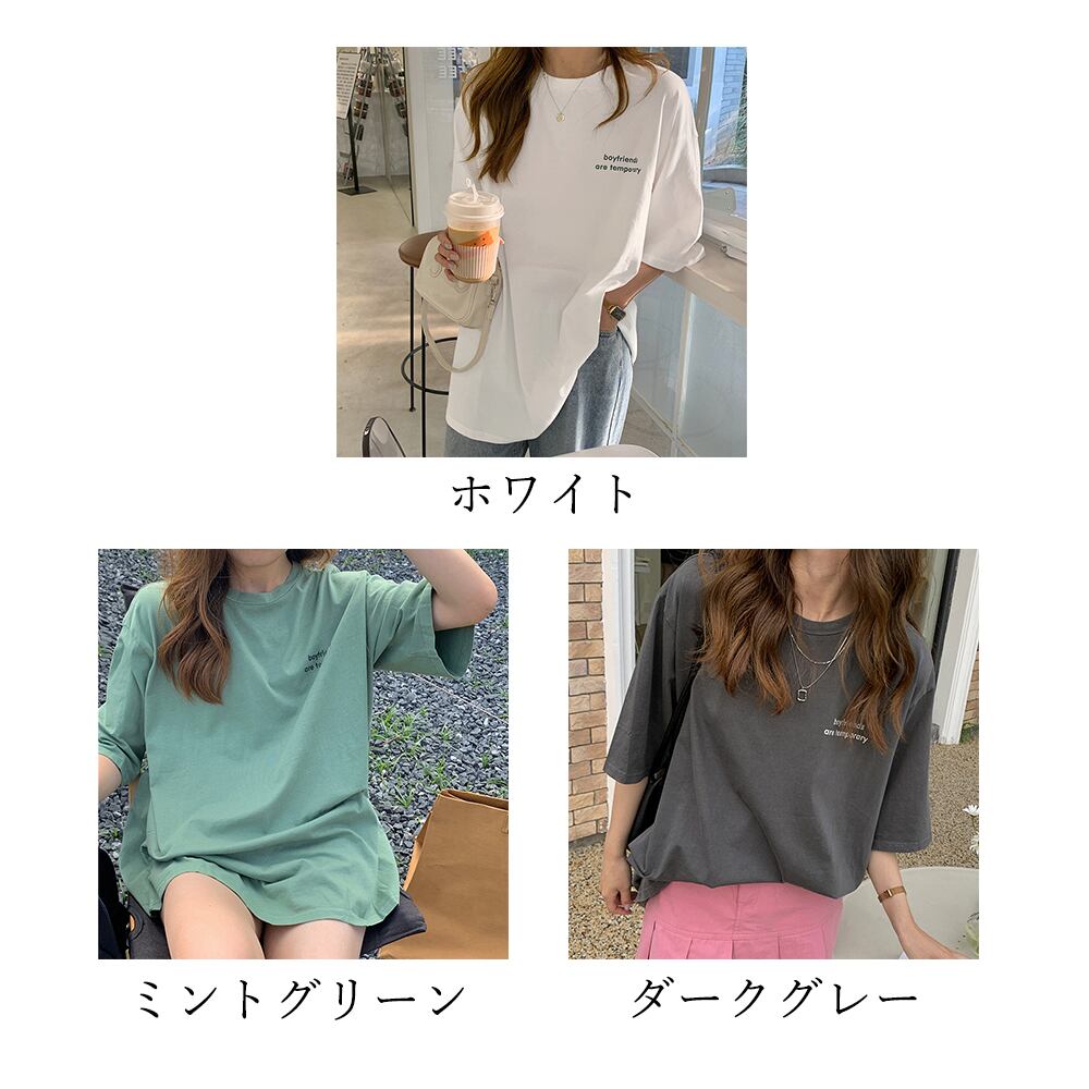半袖Tシャツ トップス オルチャン ロング丈 ゆったり カットソー ラウンドネック カジュアル 韓国風 おしゃれ
