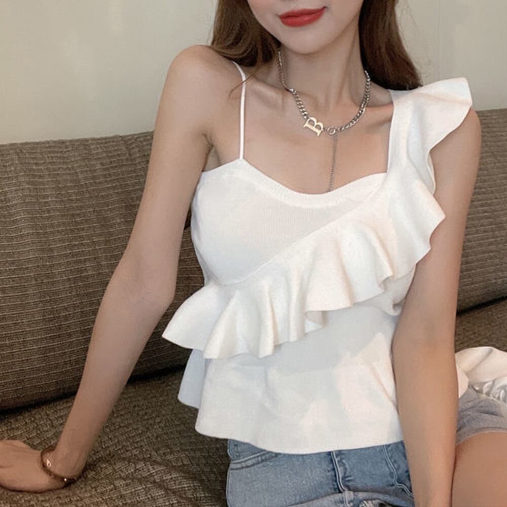 リブキャミソール フリル タンクトップ