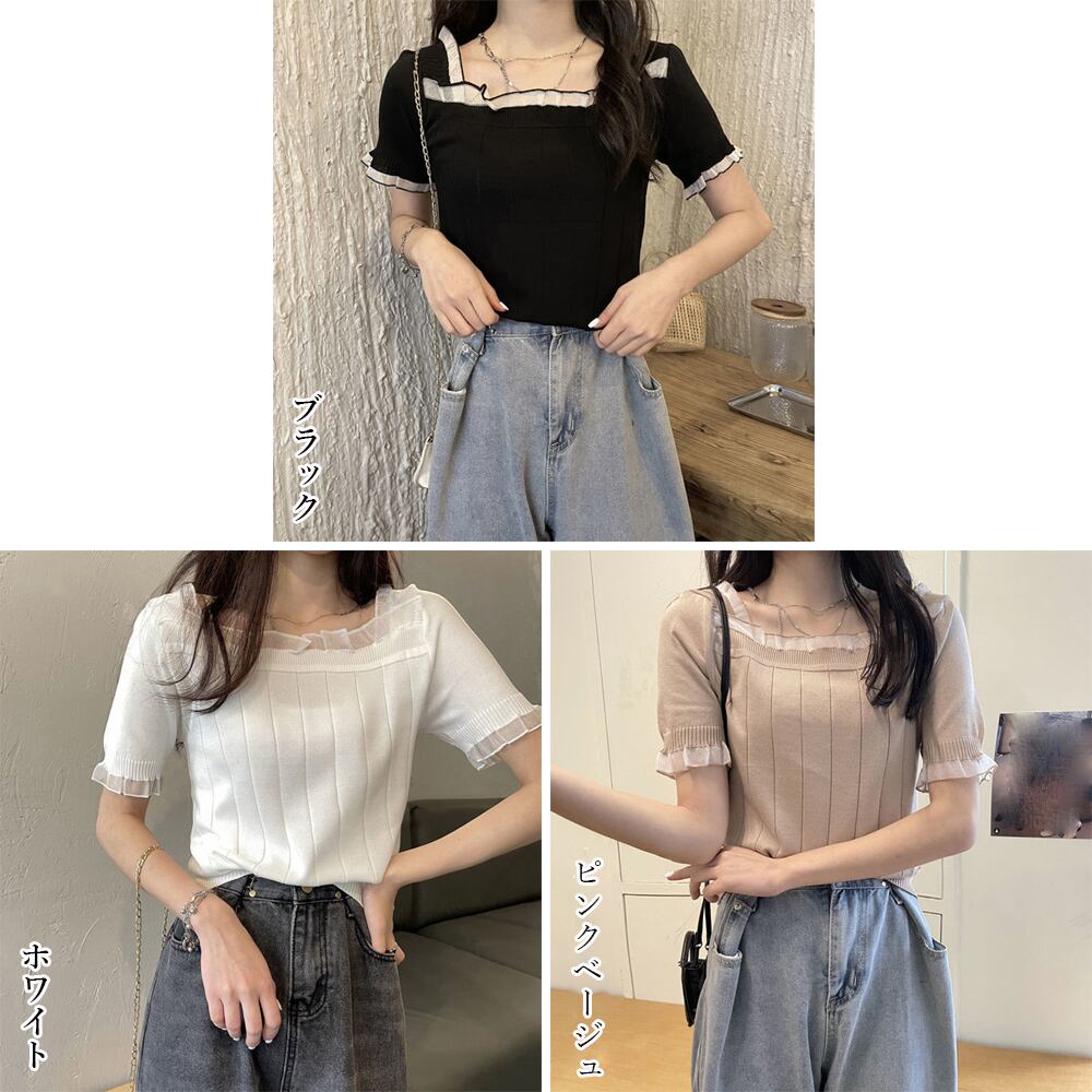 スクエアネック サマーニット レース付き