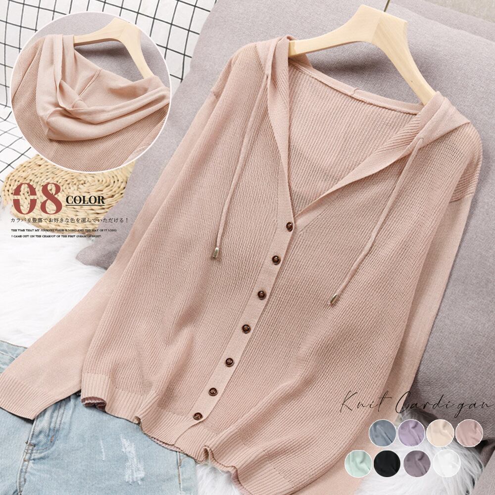 フード付き ニットカーディガン レディース 夏服 無地 ニットトップス 紫外線対策 薄手 透け感 羽織 大人 韓国