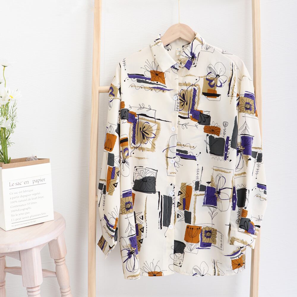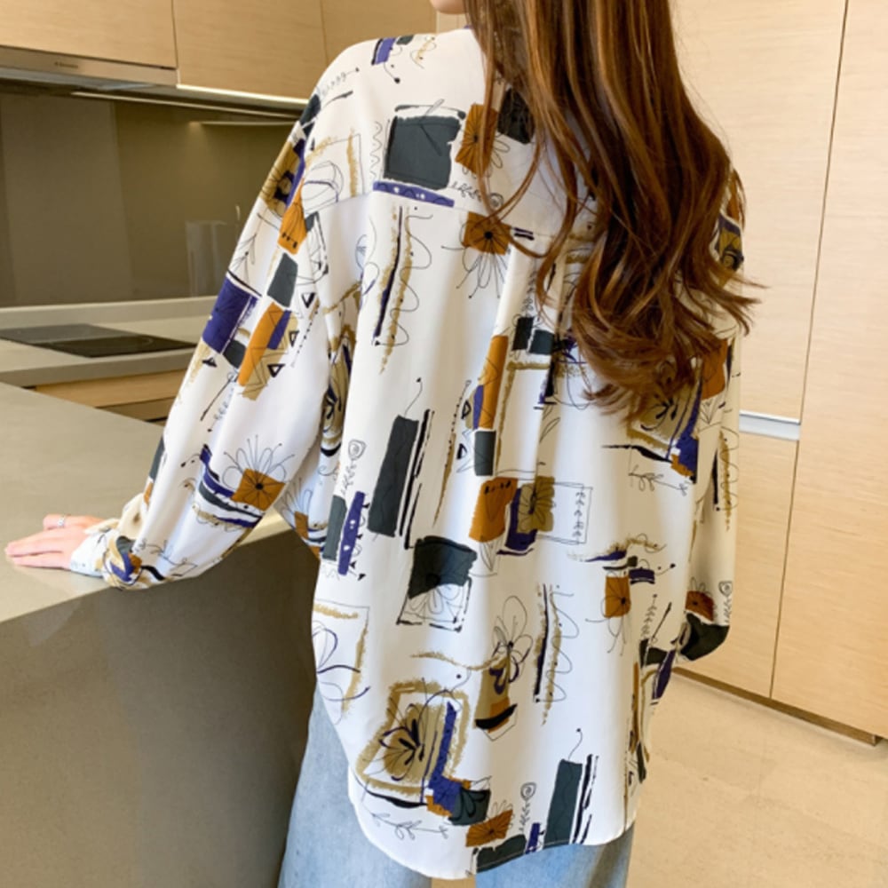 一枚でおしゃれを纏うルーズシルエットの柄物プリントブラウス