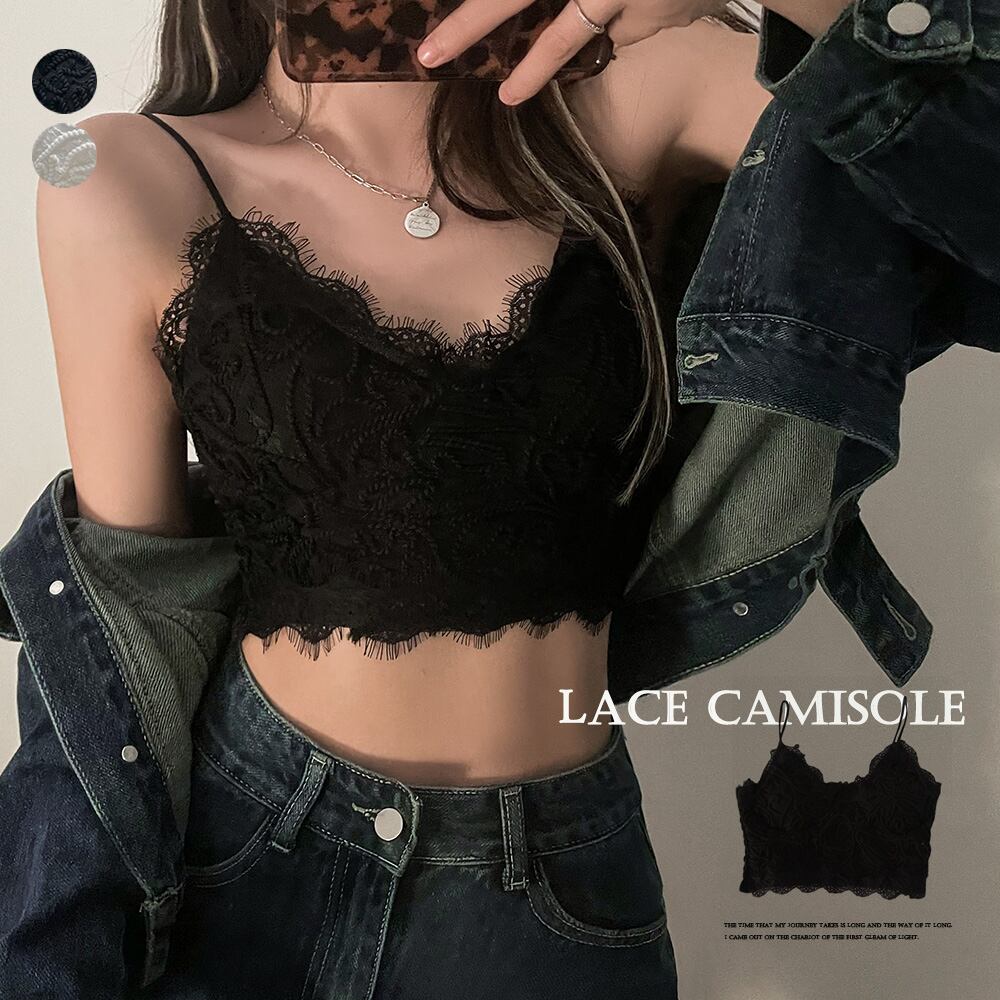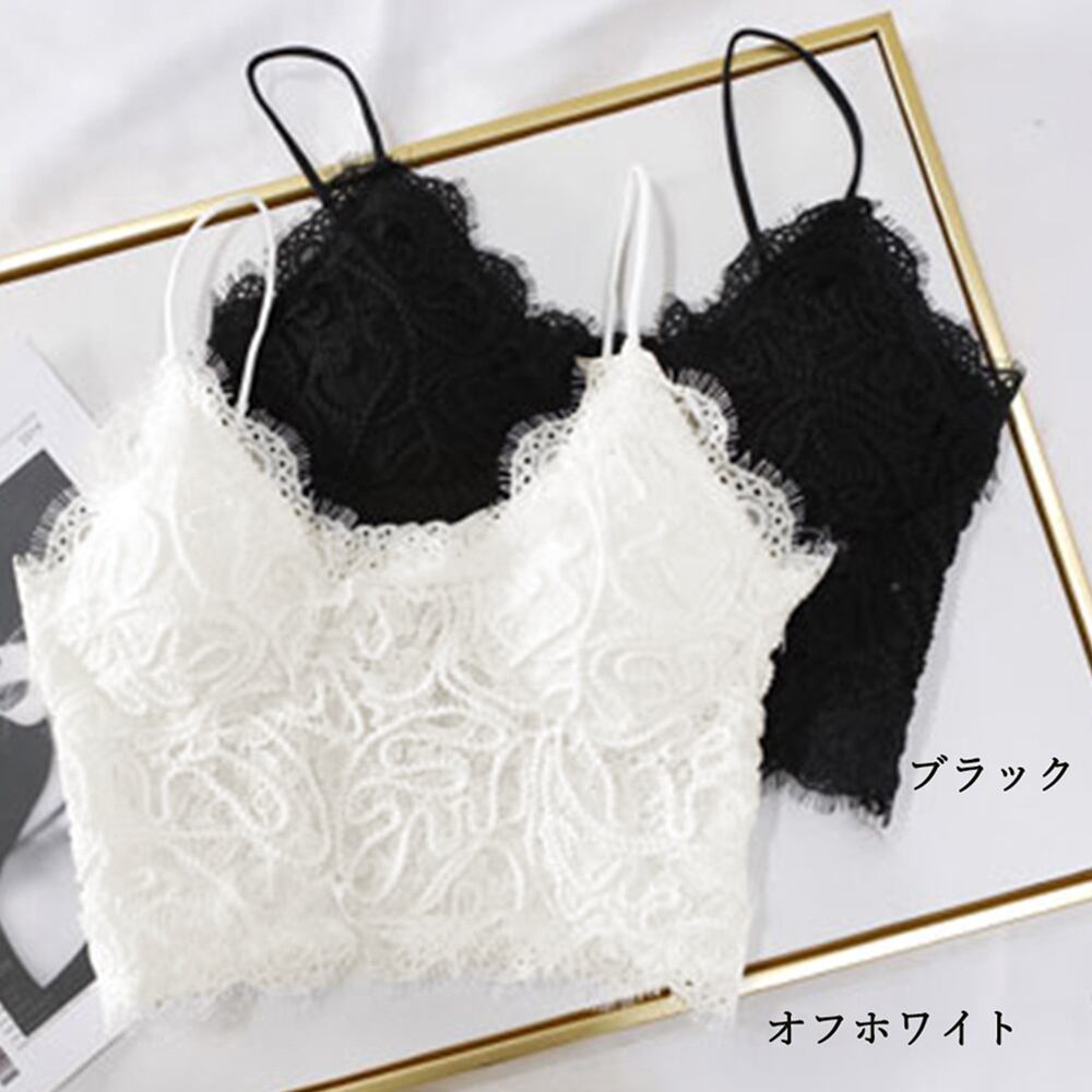 パッド付き 刺しゅう ノースリーブ ショート丈 春夏新作 ブラキャミ ギャザー 肌着 インナー オシャレ 人気 黒 花柄レース 韓国風