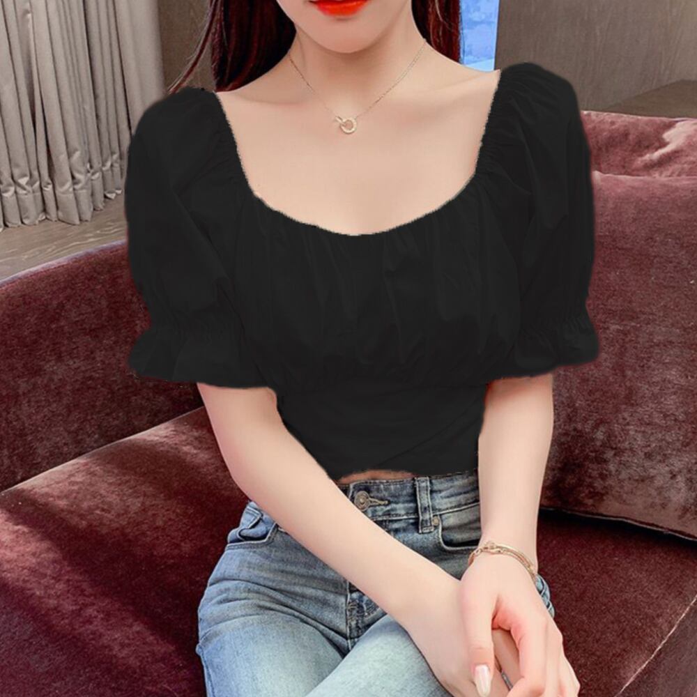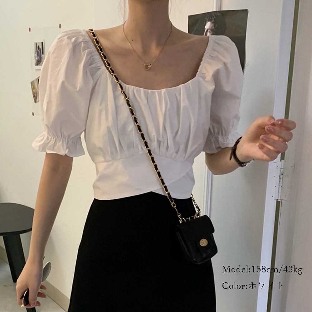 ブラウス へそ出し 無地 ショート丈 ブラウス セクシー シャツ トップス トップス きれいめ 半袖 ブラウス 鎖骨見せ シャツ