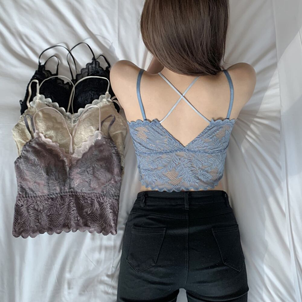 総レースキャミソール Vネック チラ見せ インナー パッド付き ショート丈
