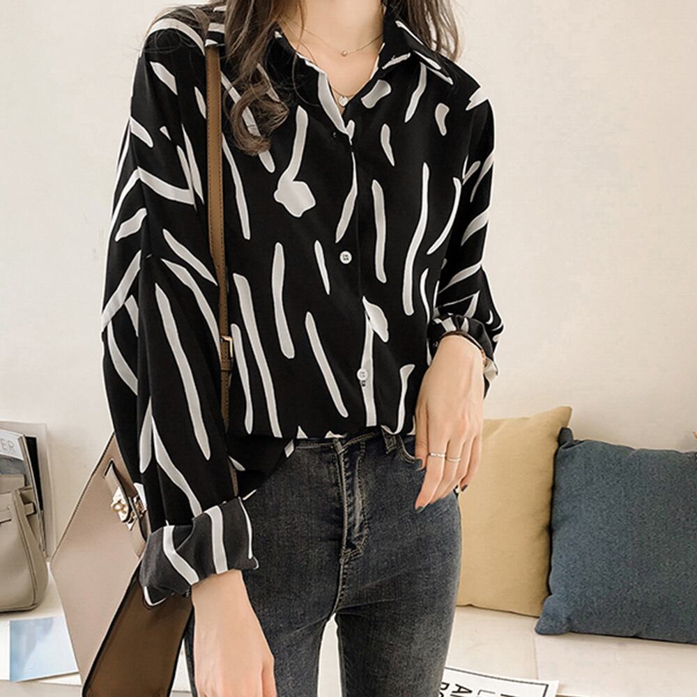 柄シャツブラウス 長袖 レディース春秋夏