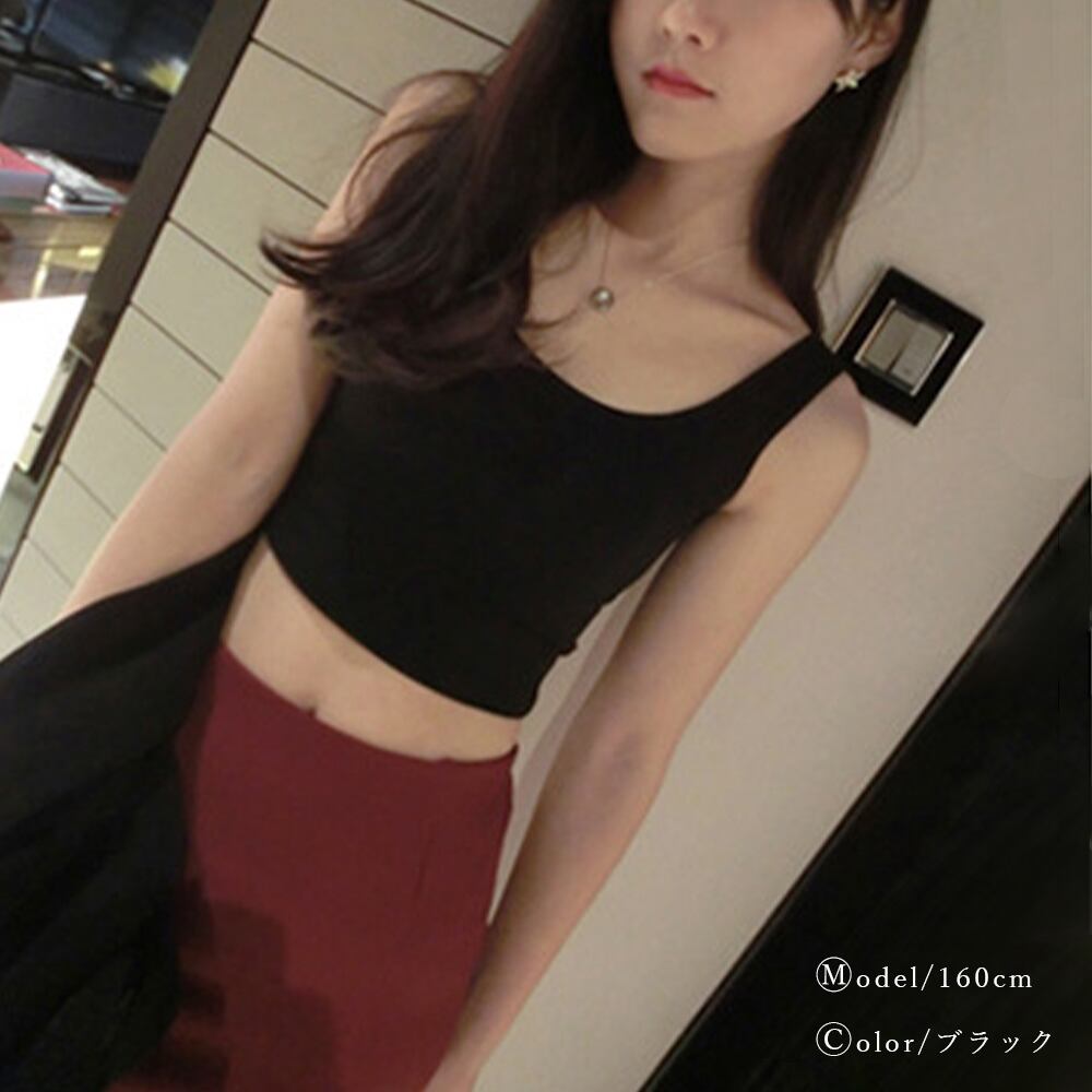 Uネック ショート丈 タンクトップ レディース 春夏 ノースリーブ トップス