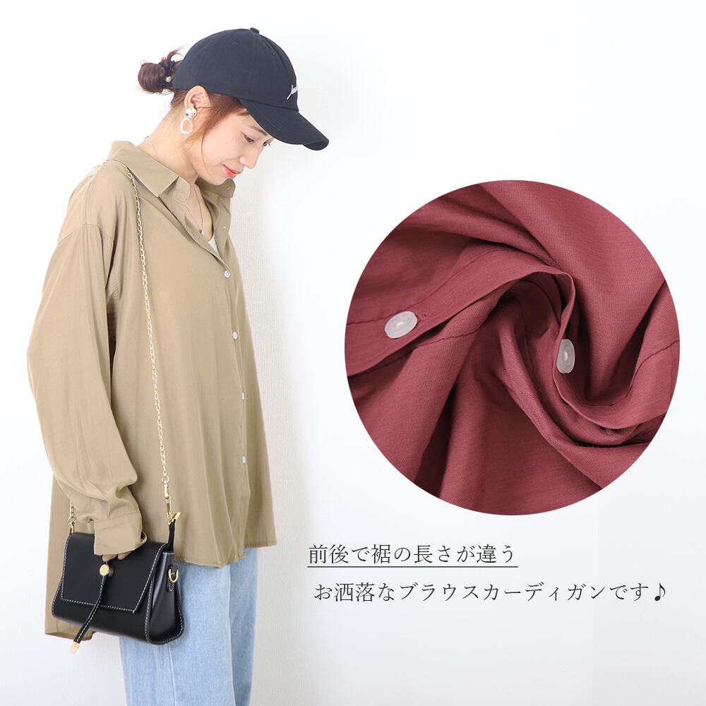 前後で裾の長さが違うお洒落なブラウスカーディガンです