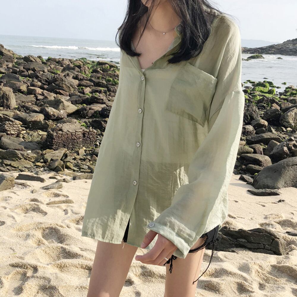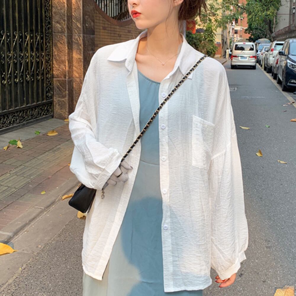 カーディガン 春夏 レディース シフォンブラウス 長袖 ロング丈トップス