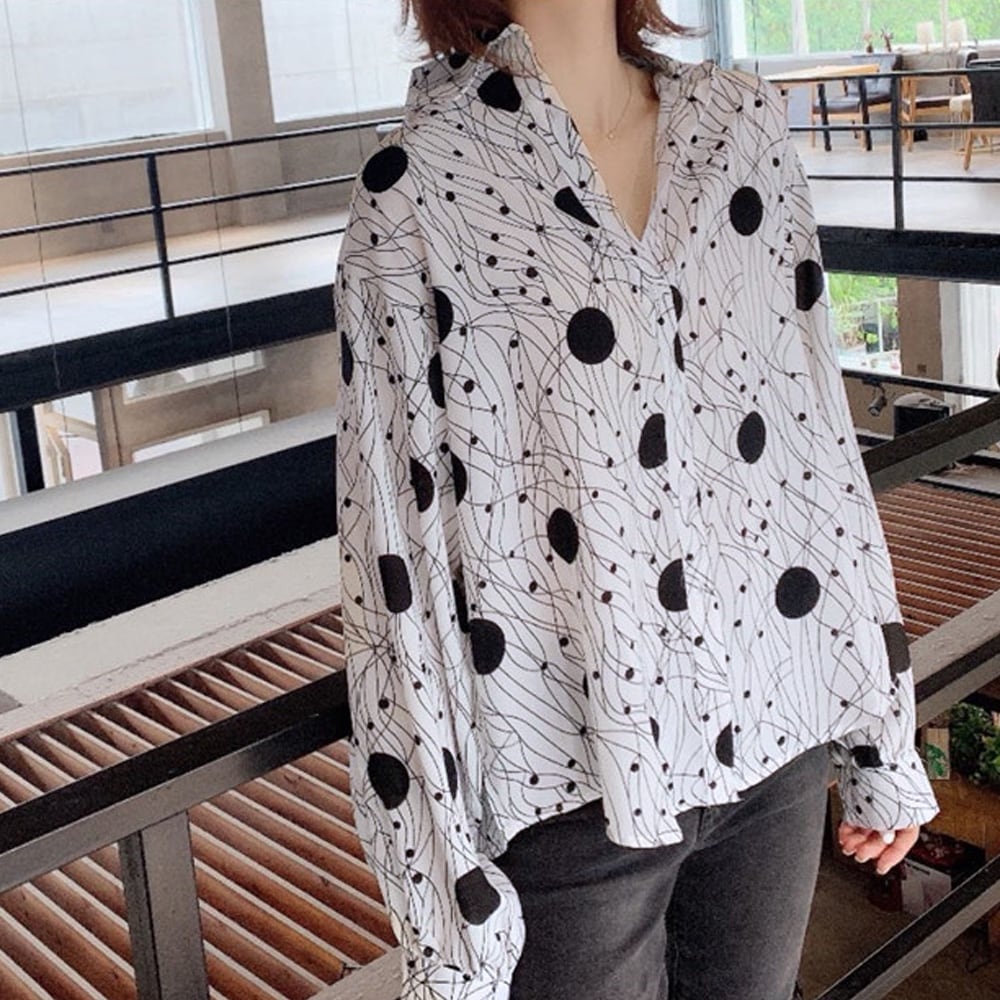 体型カバートップス プリント ブラウス 薄手 カジュアル