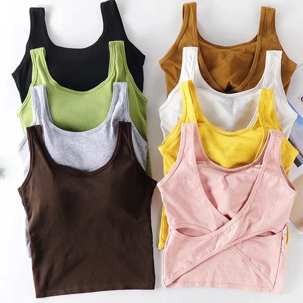 バッククロス タンクトップ レディース パッド付き ブラトップ 背中開き
