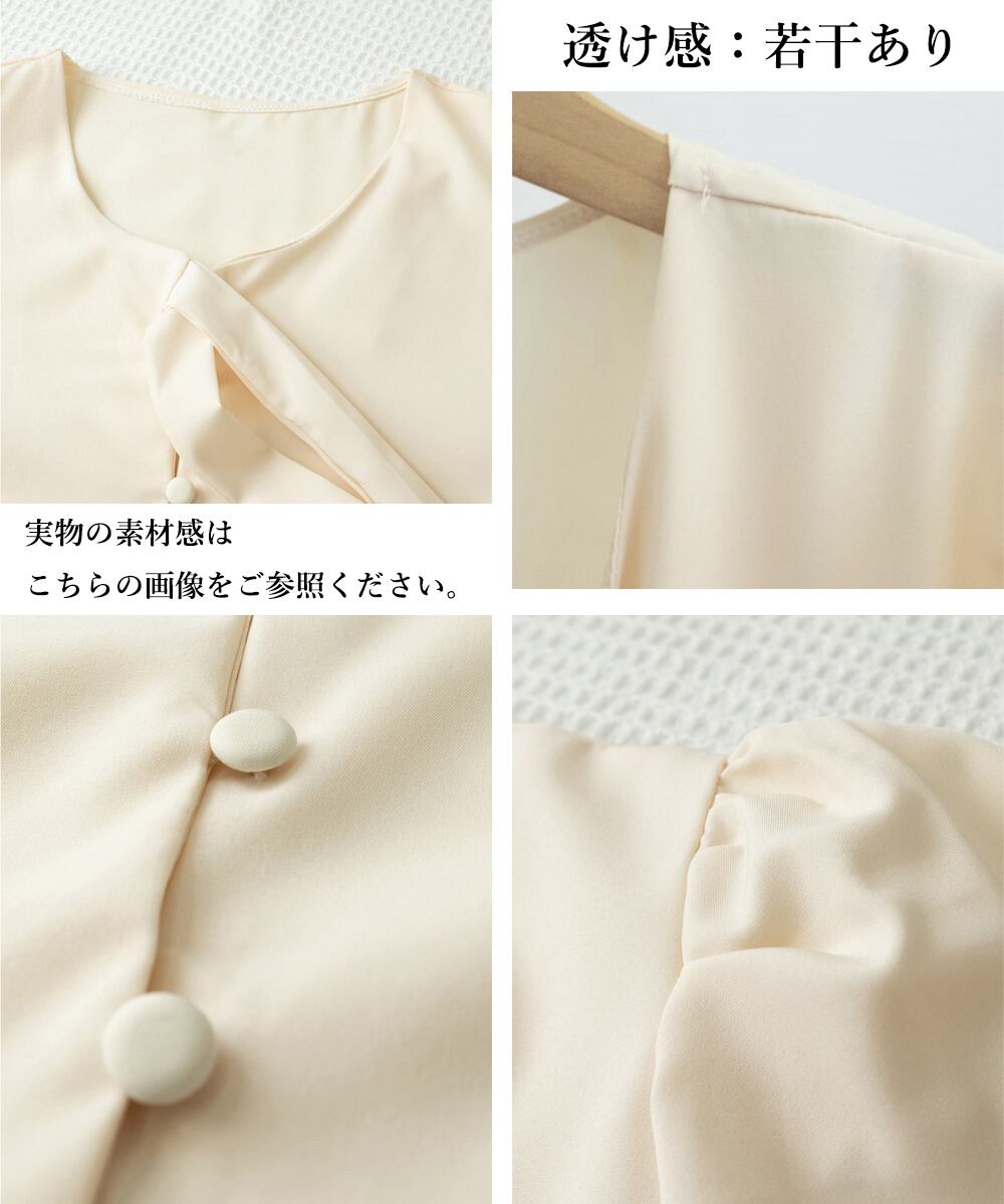 長袖リボンタイブラウス オフィスカジュアル 大人可愛いトップス 春夏 ノーカラーブラウス スーツインナーブラウス上品清楚