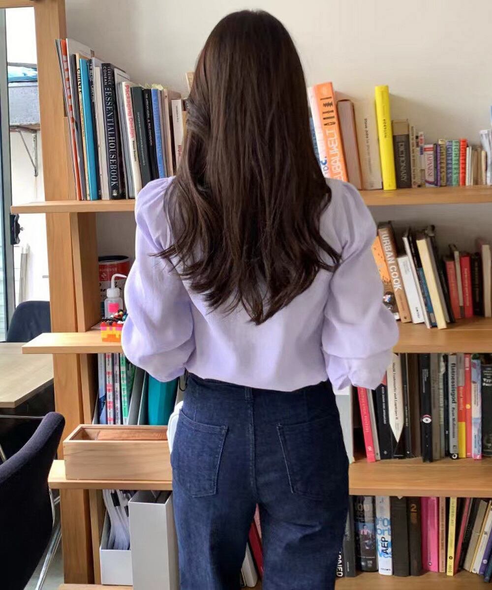 ハリ感と軽さを持ち合わせた薄手生地、ドレッシーな印象のタック袖ブラウス