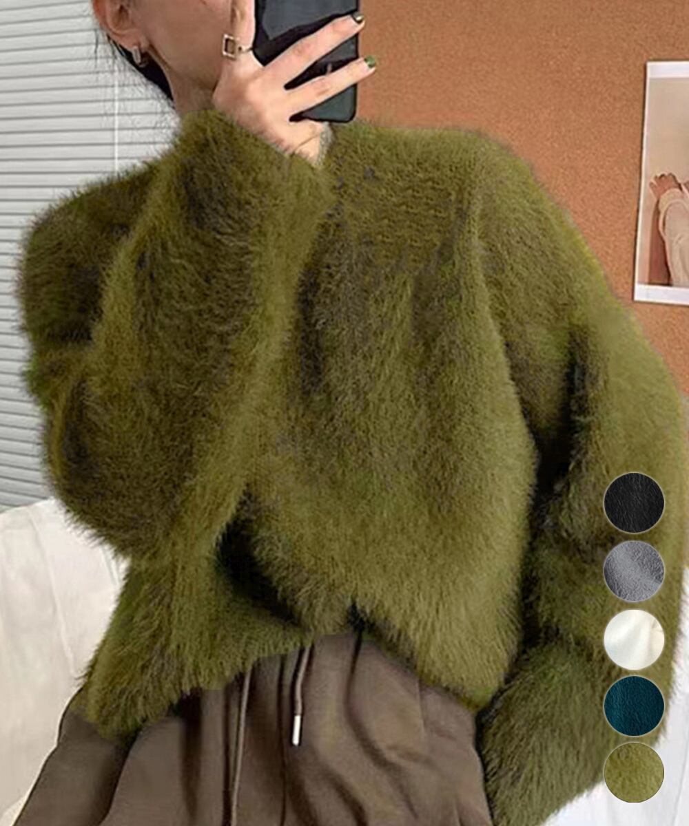 モヘアニットセーター レディース ふわふわニットプルオーバー オシャレ 秋冬シャギーセーター 韓国風 大人可愛いトップス