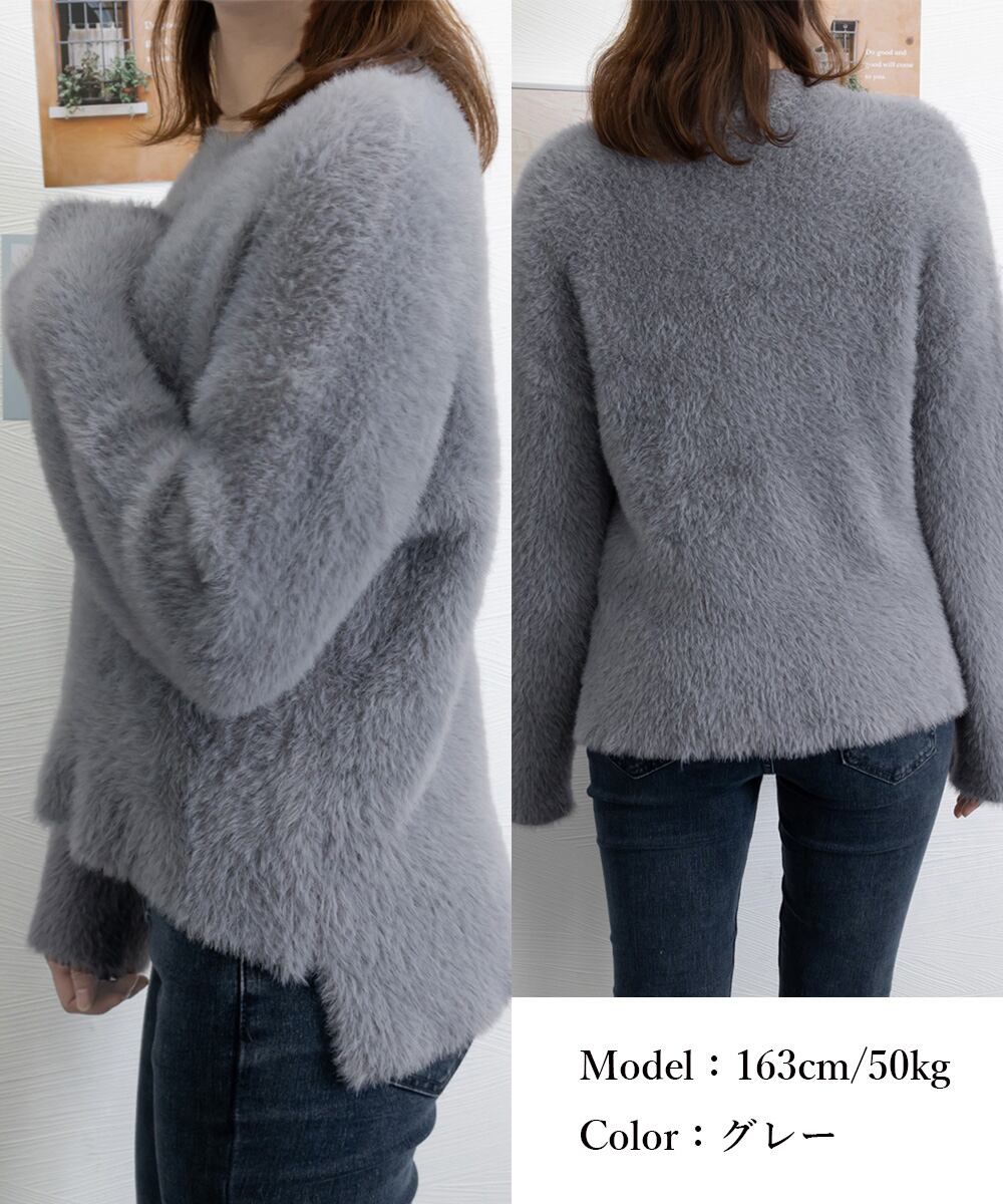 シャギーニットトップス クルーネック長袖