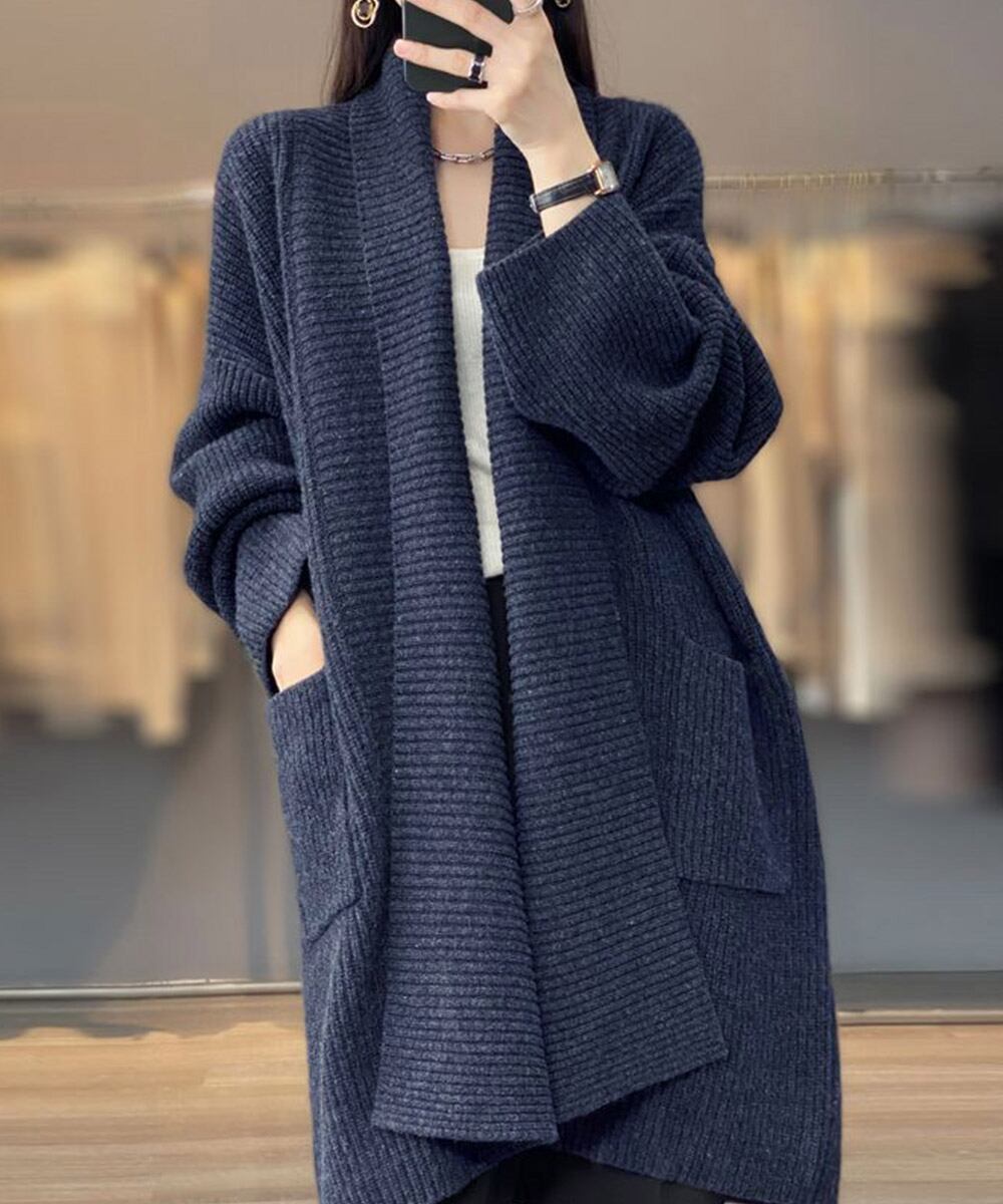 ミドルカーディガン ボタンレスカーデ秋 体型カバー 着やせ