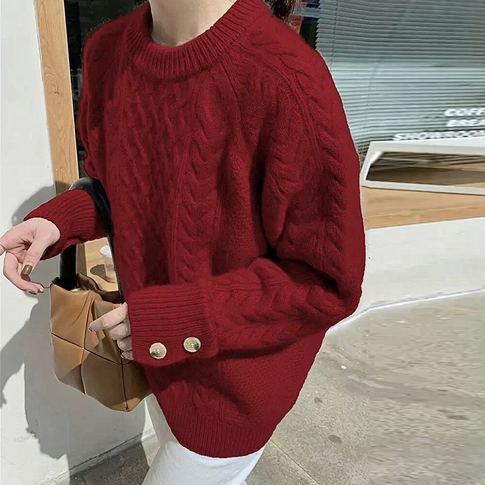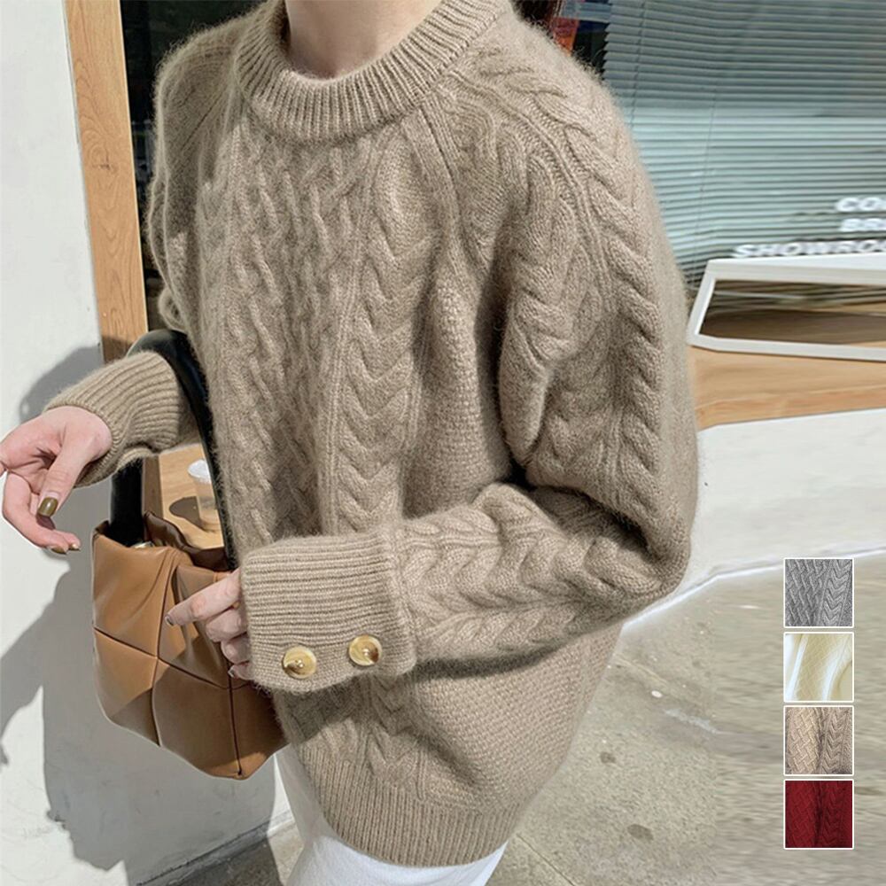 ケーブル編みニットトップスレディース韓国