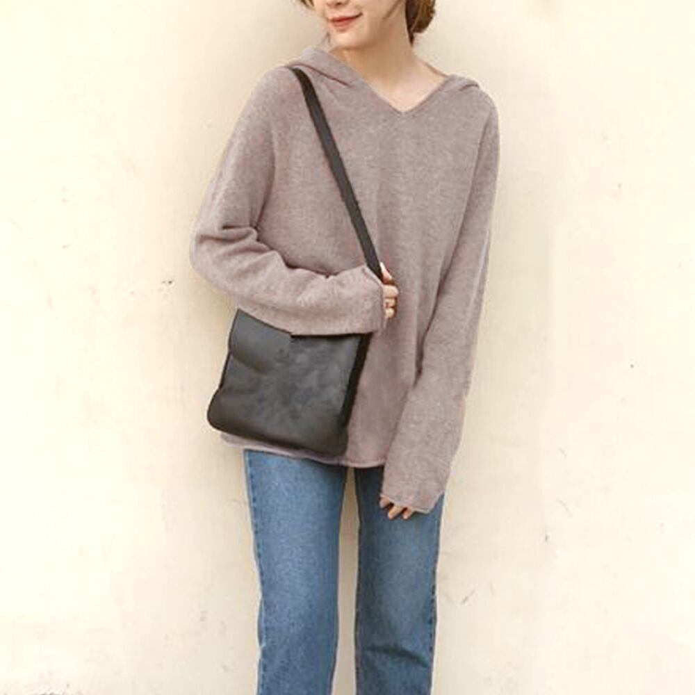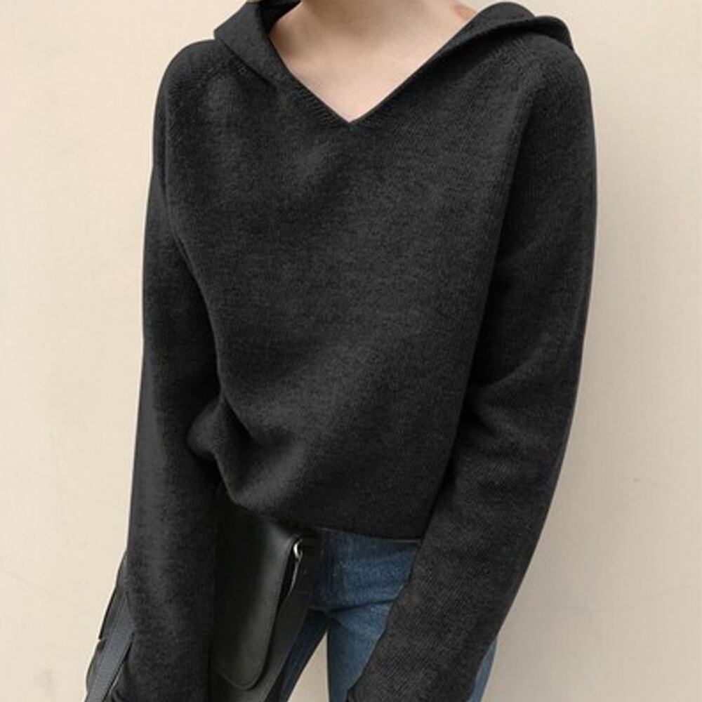 フード付き ニットトップス レディース Vネック ニットセーター 長袖 シンプル ニットパーカー プルオーバー 秋冬