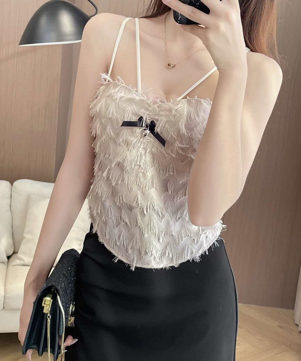 クロップド丈 見せインナー バックシャーリング セクシーキャミ 背中見せインナートップス ノンワイヤー リボンキャミブラ