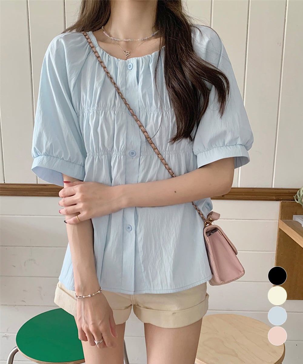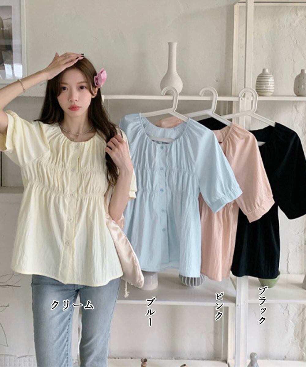 半袖シャツブラウス シャーリングトップス