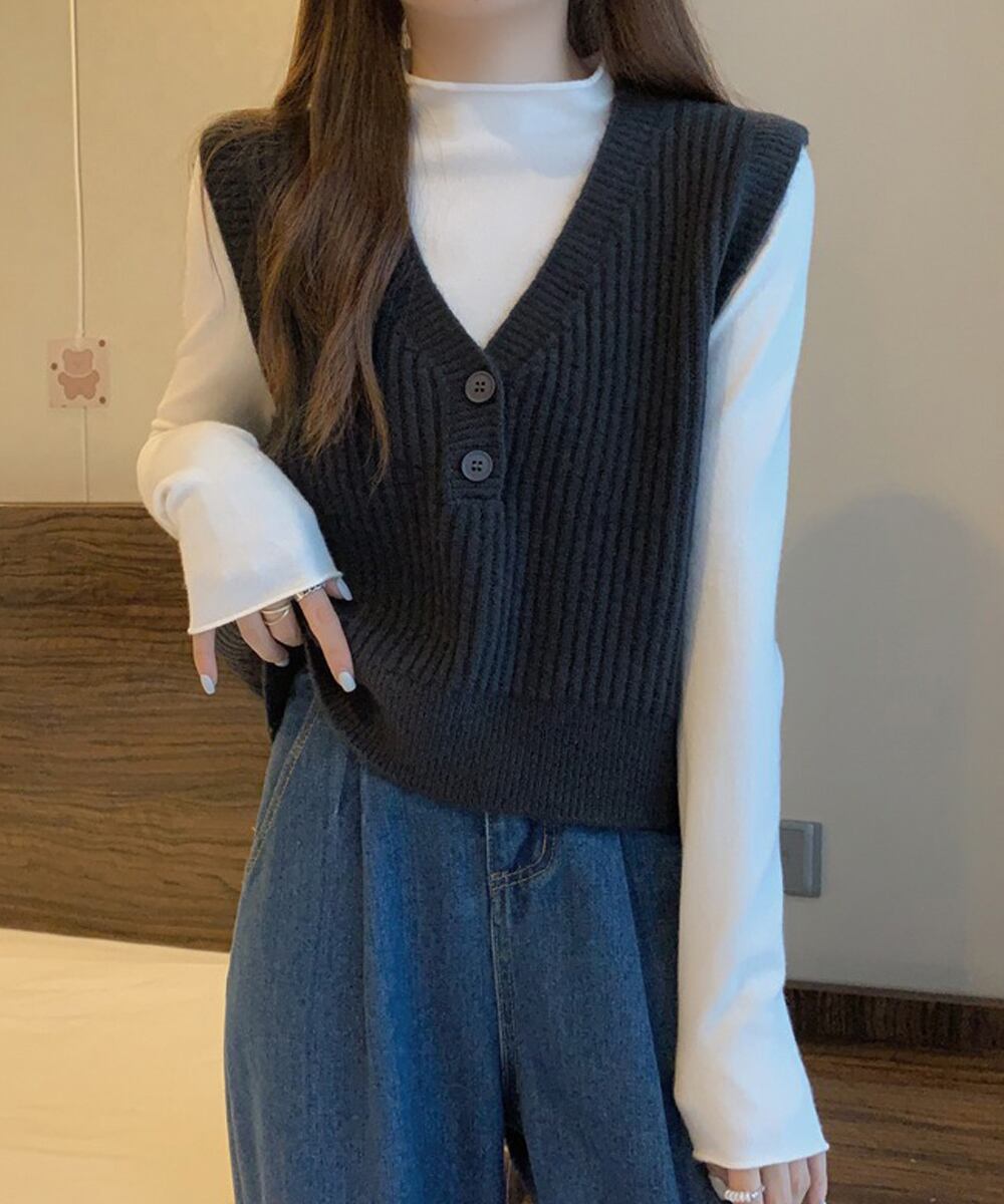 Vネックニットベスト コンパクトベスト