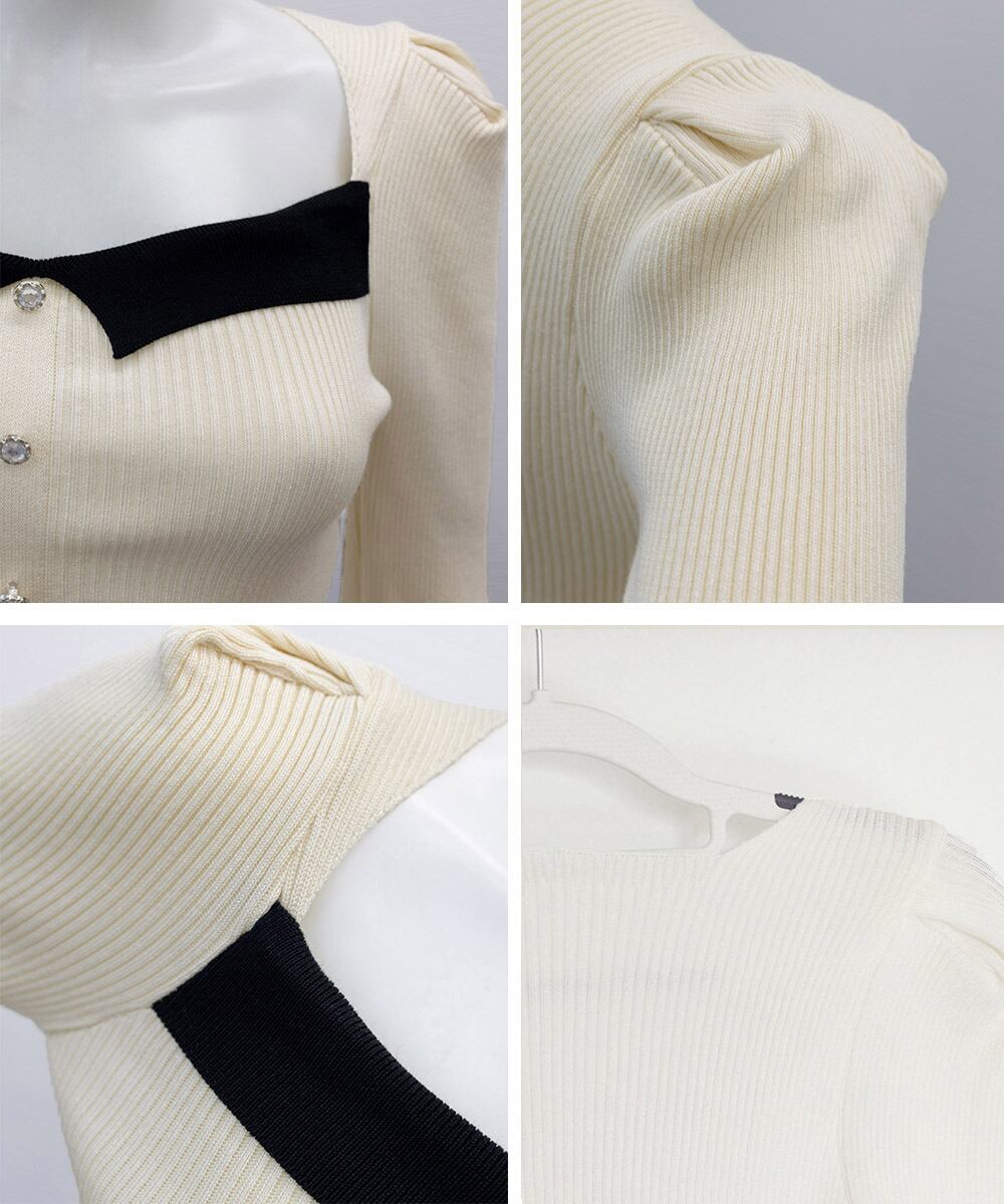 スクエアネック フェイクボタンニット