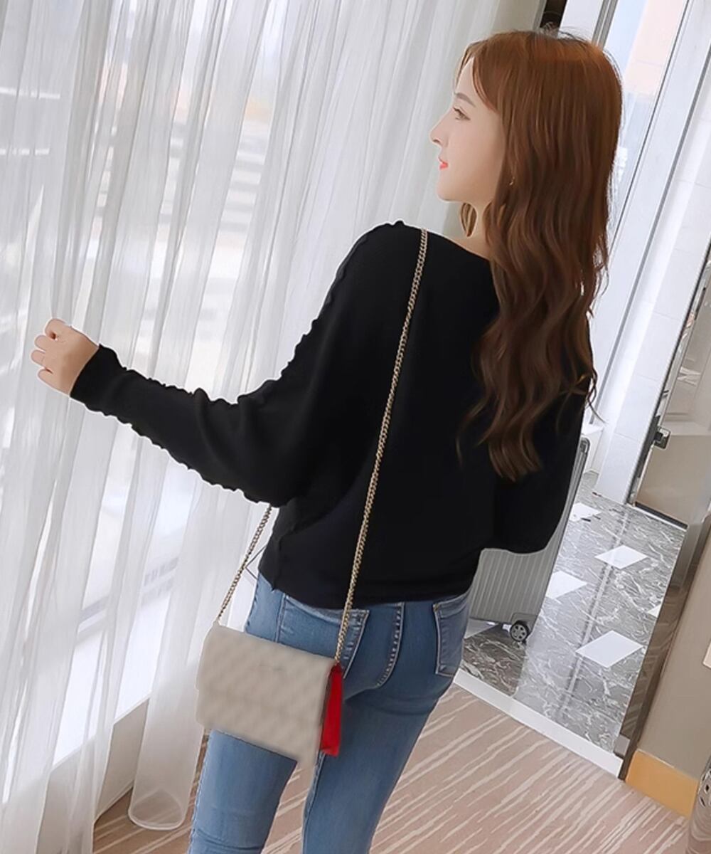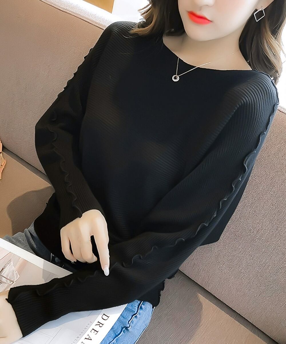 ドルマンスリーブリブニット ボートネック