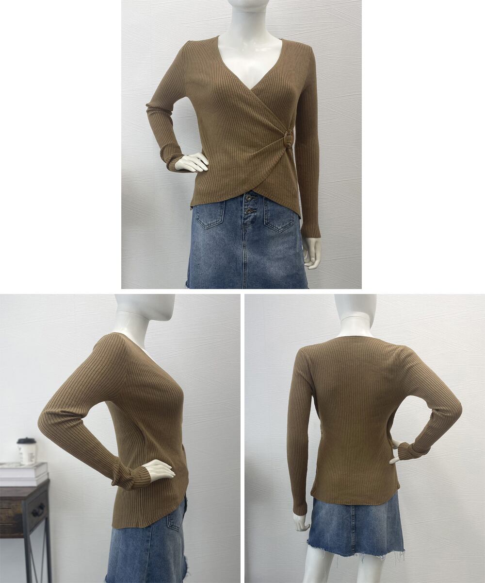 タイトなデザインがセクシーなカシュクール風ニットトップス