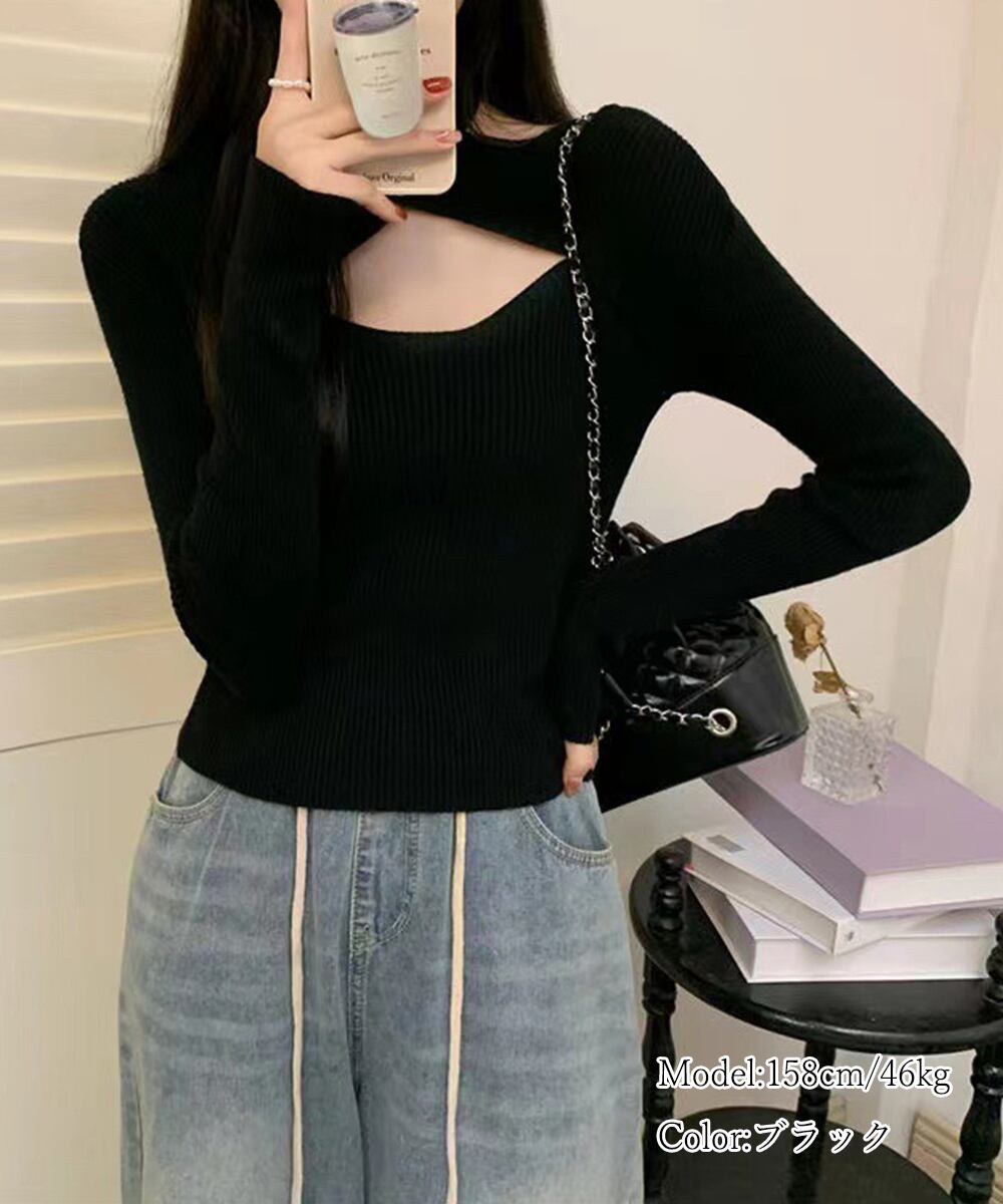 無地ニットインナー ニットセーター長袖 ベーシックニット