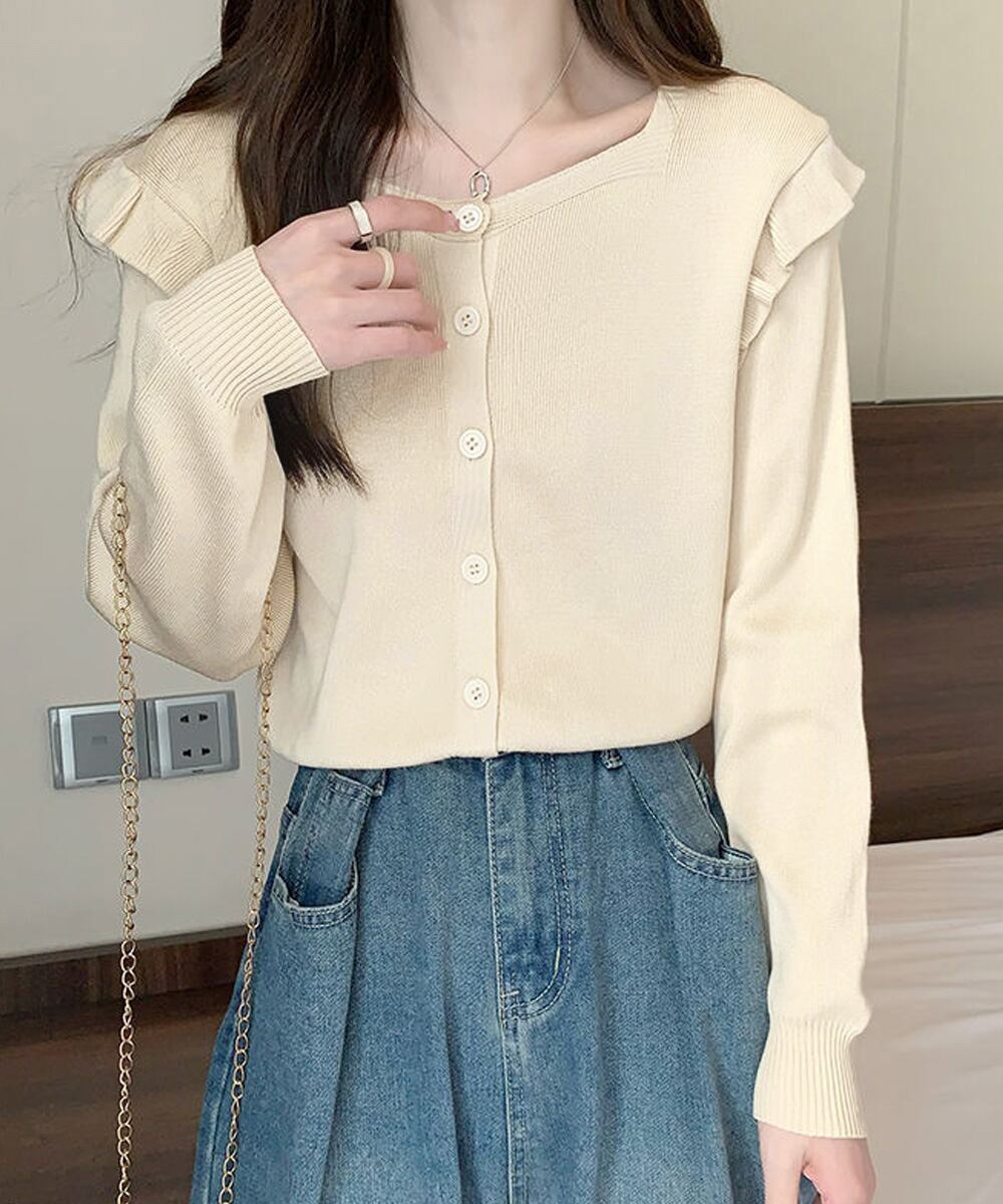 ニットカーディガン ショルダーフリル