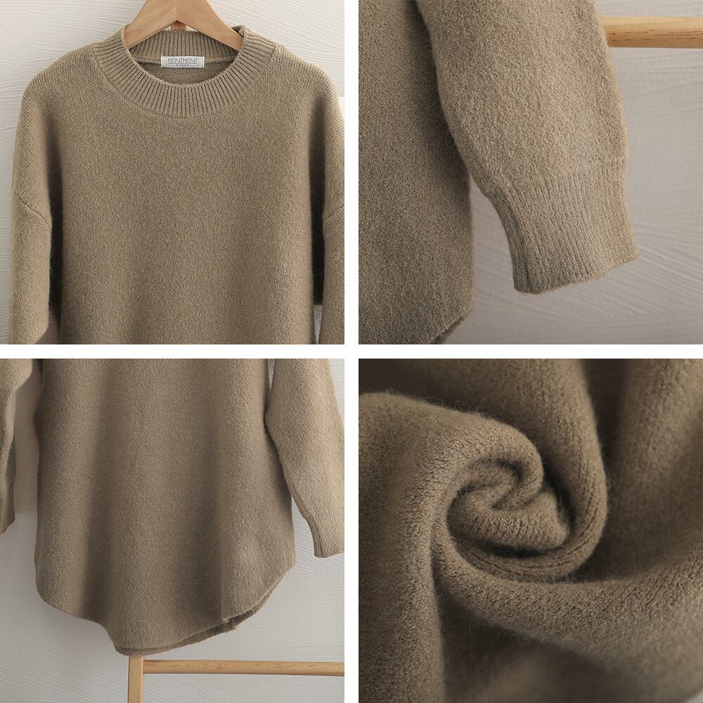レディース おしゃれニットカットソー 長袖ゆったり ニットプルオーバー 体型カバー韓国セーター 着やせ 無地ラウンドヘム