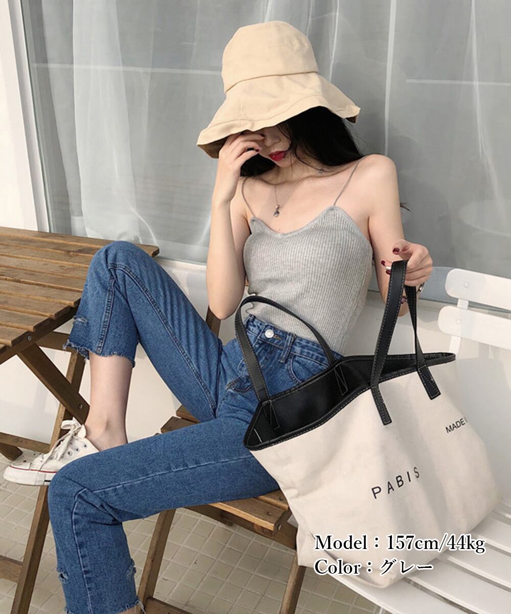 キャミソールトップス リブニットキャミ夏