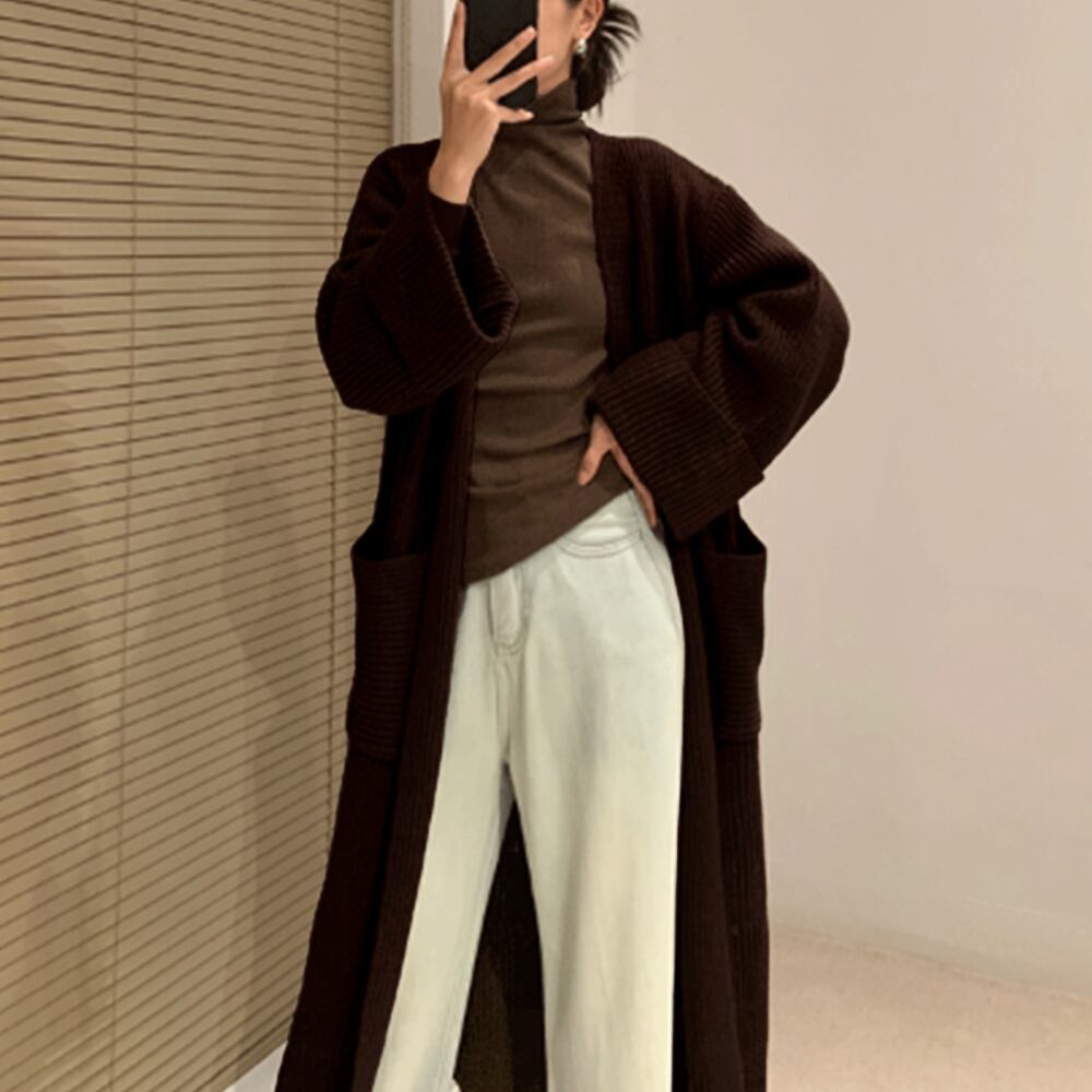 ロング丈&オーバーシルエットで華奢感を演出してくれるニットロングカーディガン