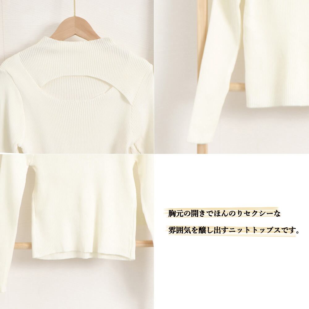 胸元の開きでほんのりセクシーな雰囲気を醸し出すニットトップスです