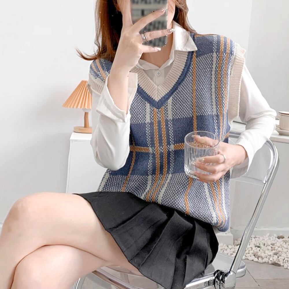 レトロ ノースリーブニット 柄ニットカットソー 重ね着 カジュアルシルエット ニットチョッキ 春秋冬 ニットウェア 韓国