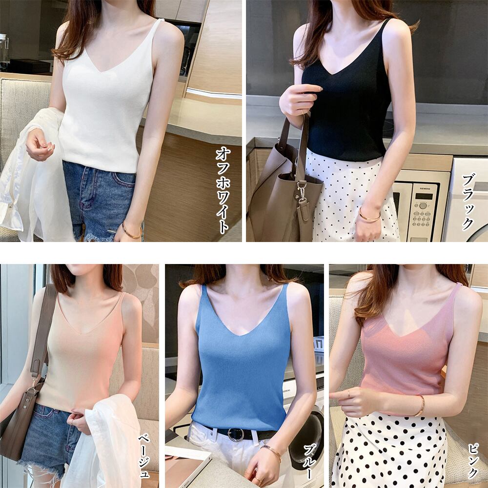 Vネックリブニットキャミソール 韓国風