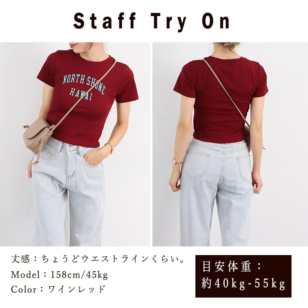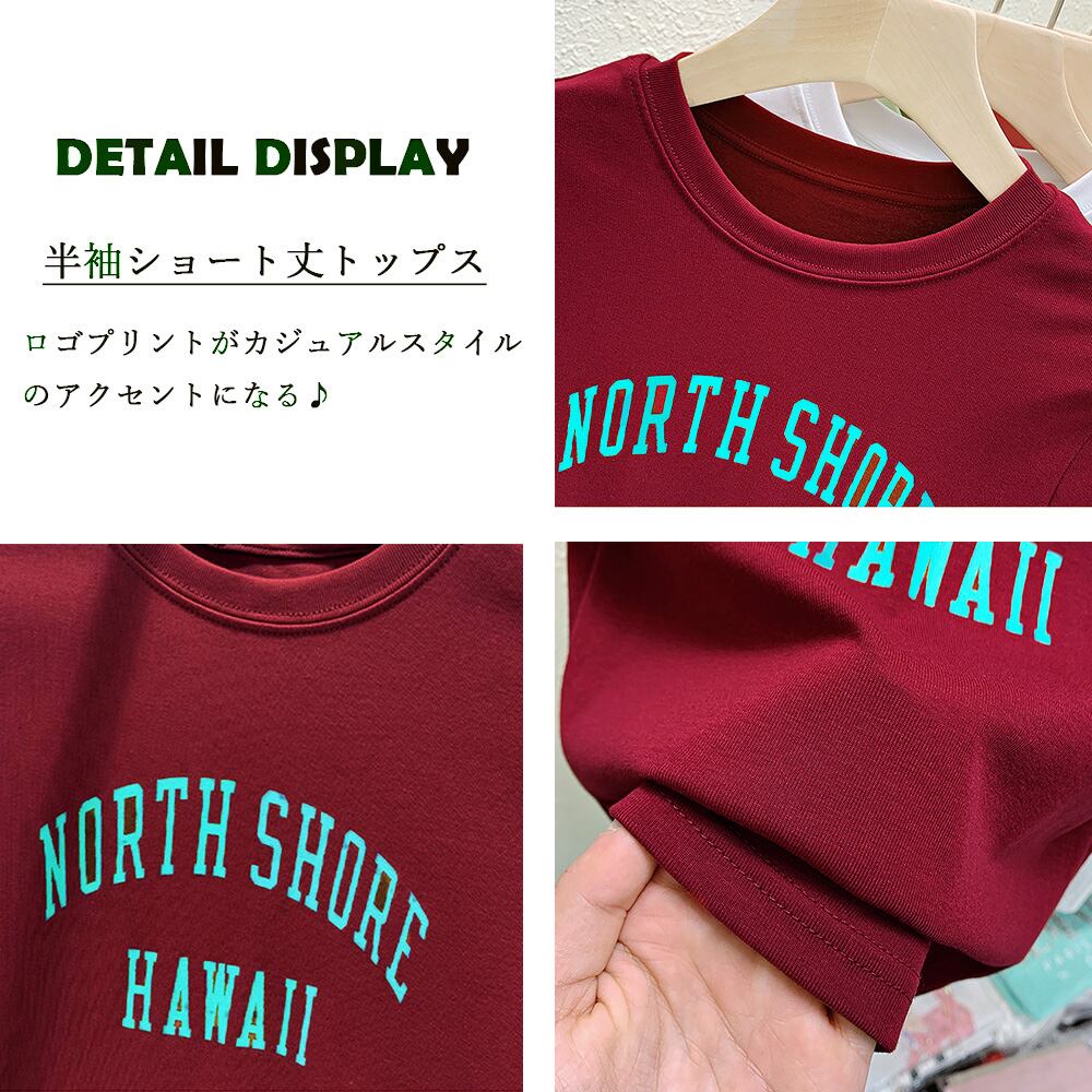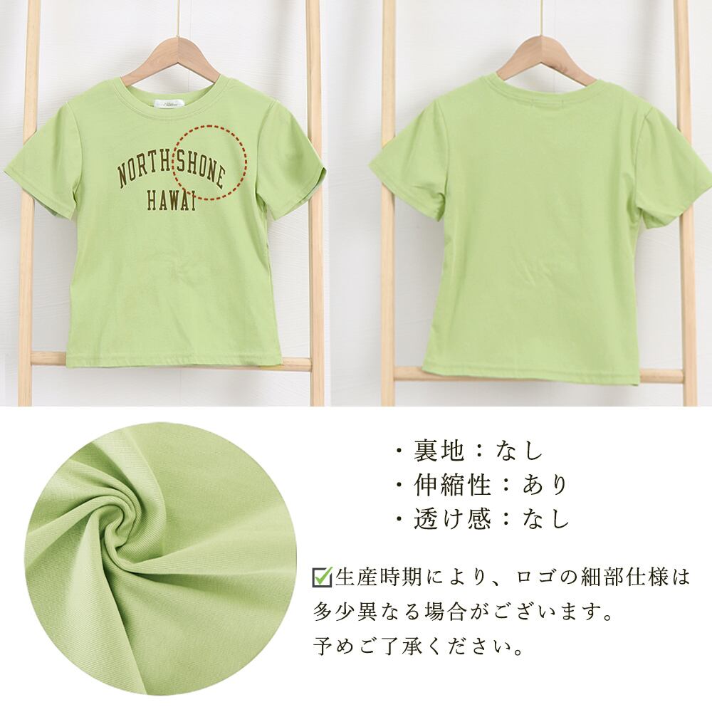 ロゴプリントがカジュアルスタイルのアクセントになる半袖ショート丈トップス