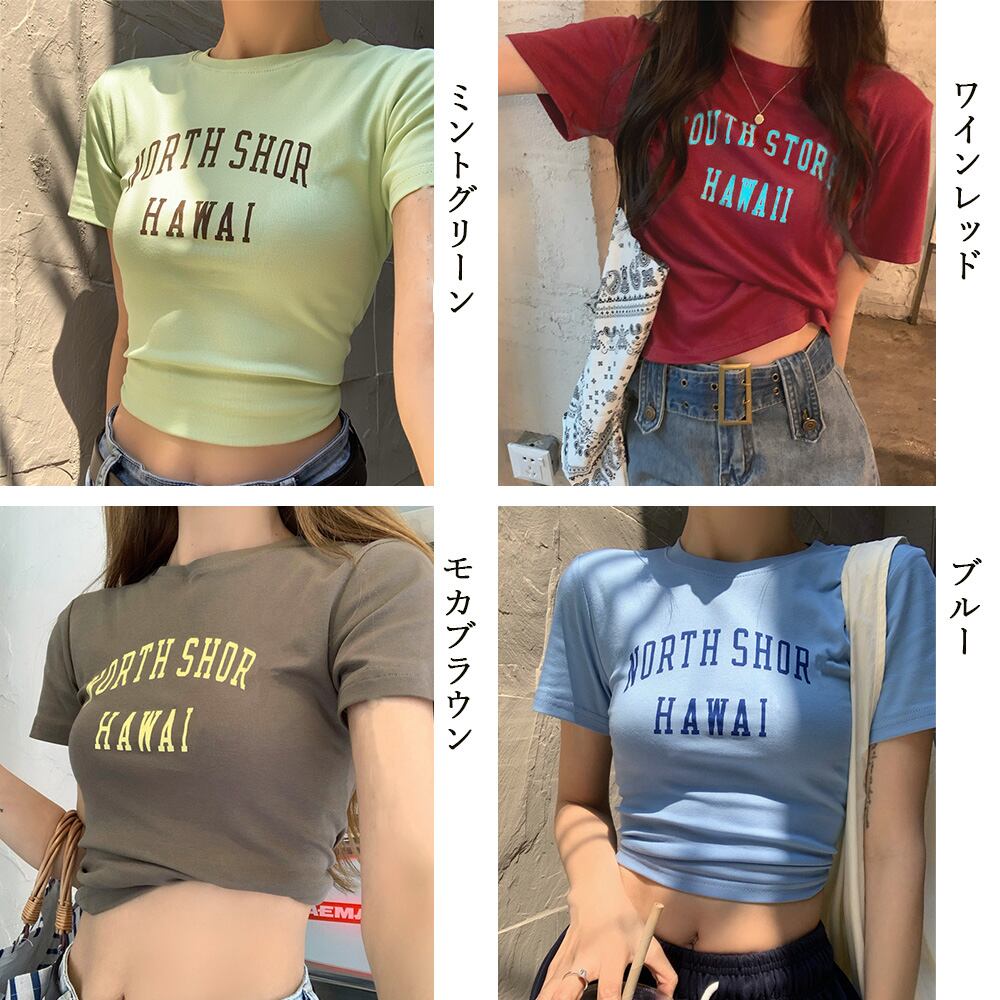 セクシー クロップド丈 tシャツ ロゴプリント 半袖カットソー クルーネックオシャレダンス衣装 着やせTシャツ レトロ風