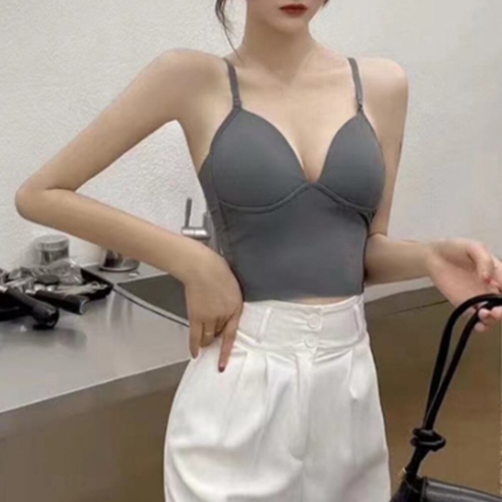レディース Vネック ノンワイヤー 人気 ショート丈 ブラトップ 可愛い デコルテ 韓国風 無地 セクシー