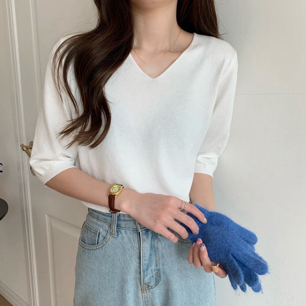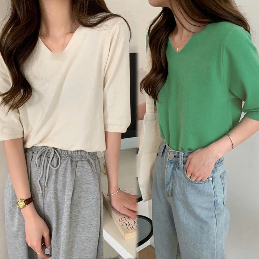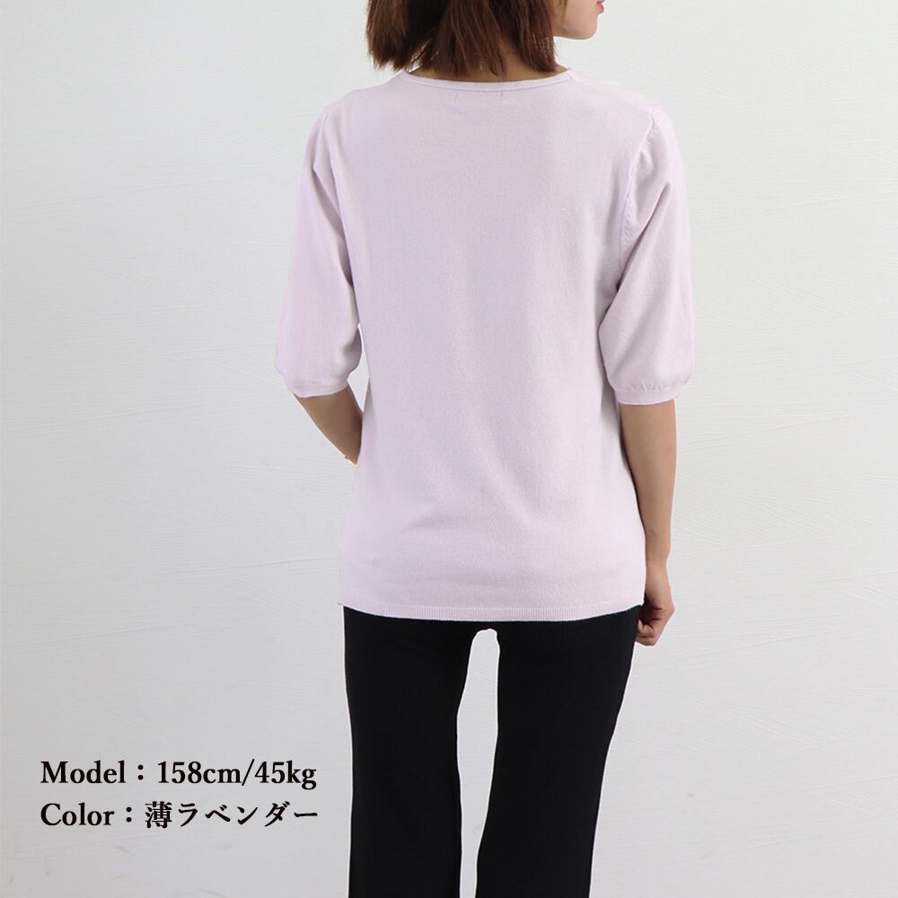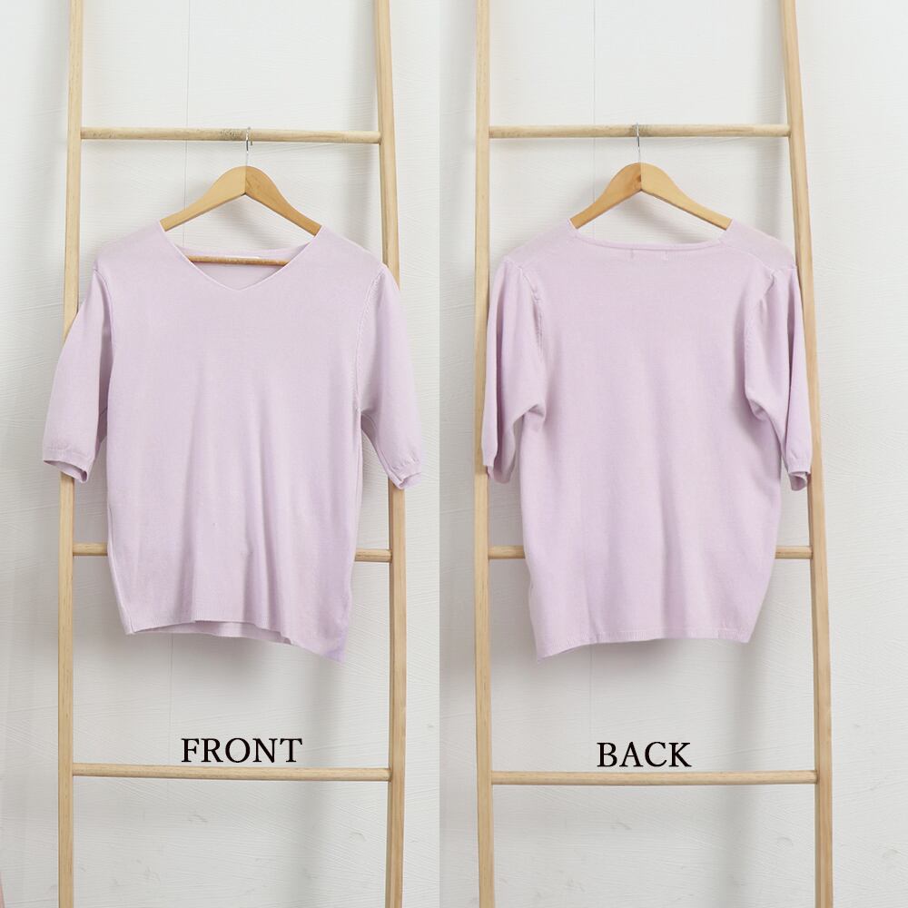 五分袖で、薄型なので、春夏秋の季節にには欠かせないニットトップス