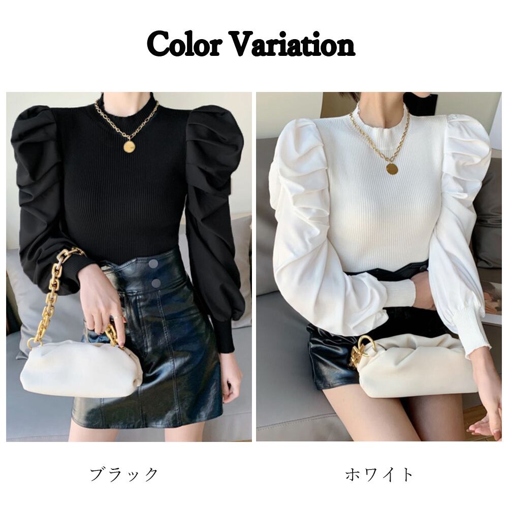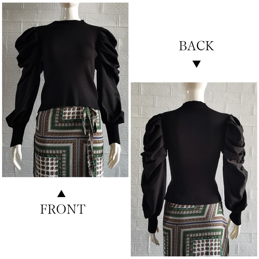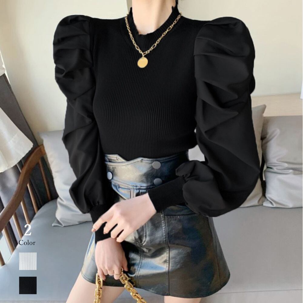 ニットソー レディース ボリューム袖切り替えニット 異素材 トップス お洒落 長袖