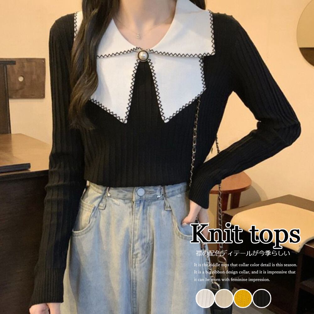 レディース きれいめ ニットセーター 秋冬 配色 ニットソー 着やせ ニットウェア プルオーバー エレガントトップス