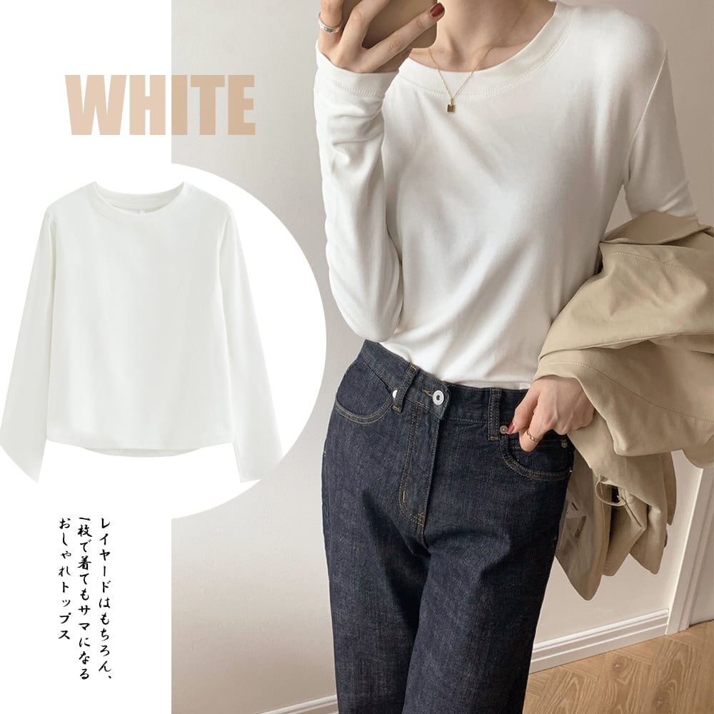 暖かい インナートップス 防寒 ラウンドネック カットソー 秋冬 韓国ファッション 長袖 微起毛インナー ベーシック