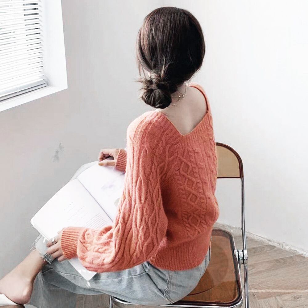 ケーブルニット スクエアネック 韓国風