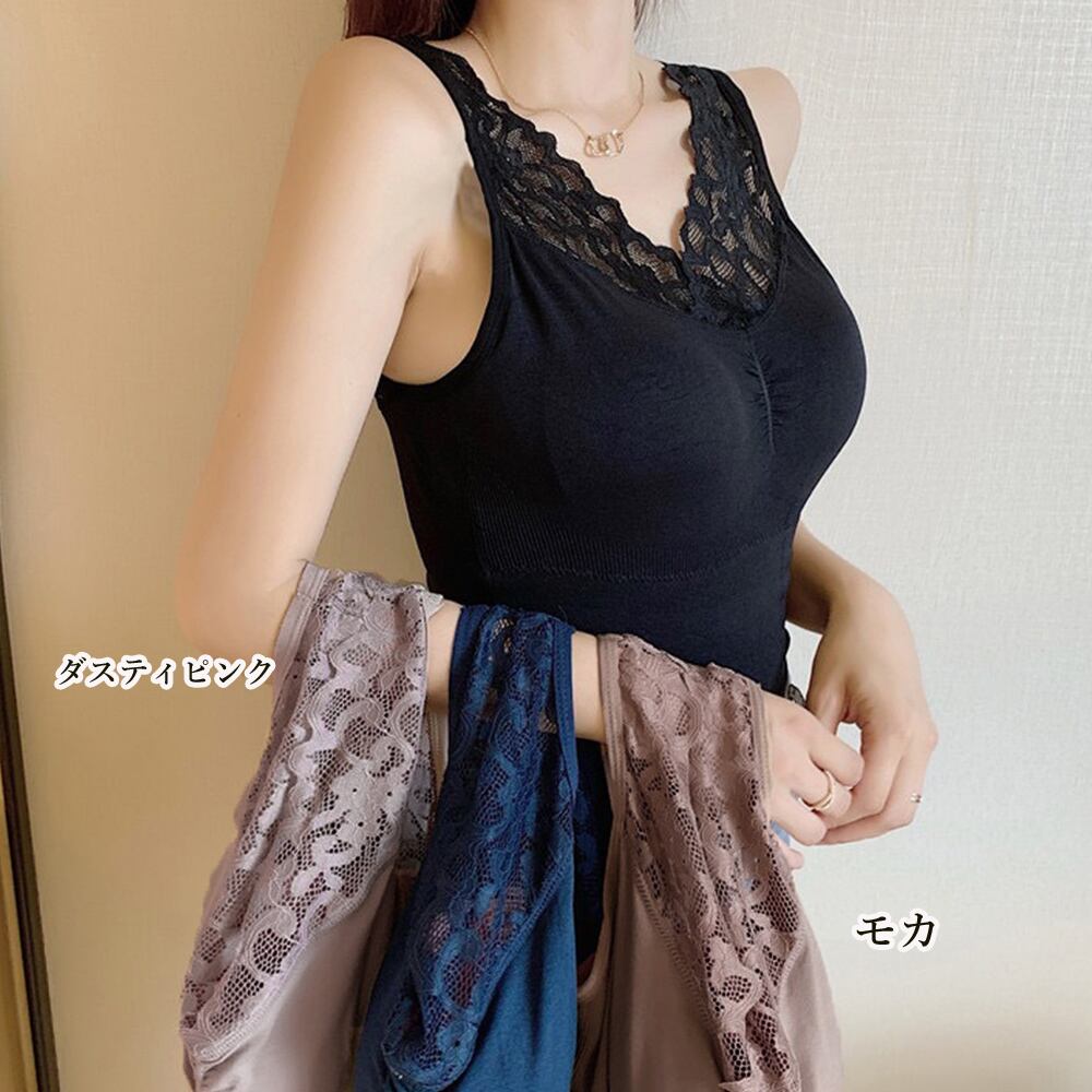 タンクトップ カップ付き ブラトップ セクシー 胸元 冷え対策 防寒下着 あったか 肌着 ノンワイヤー レーストップス
