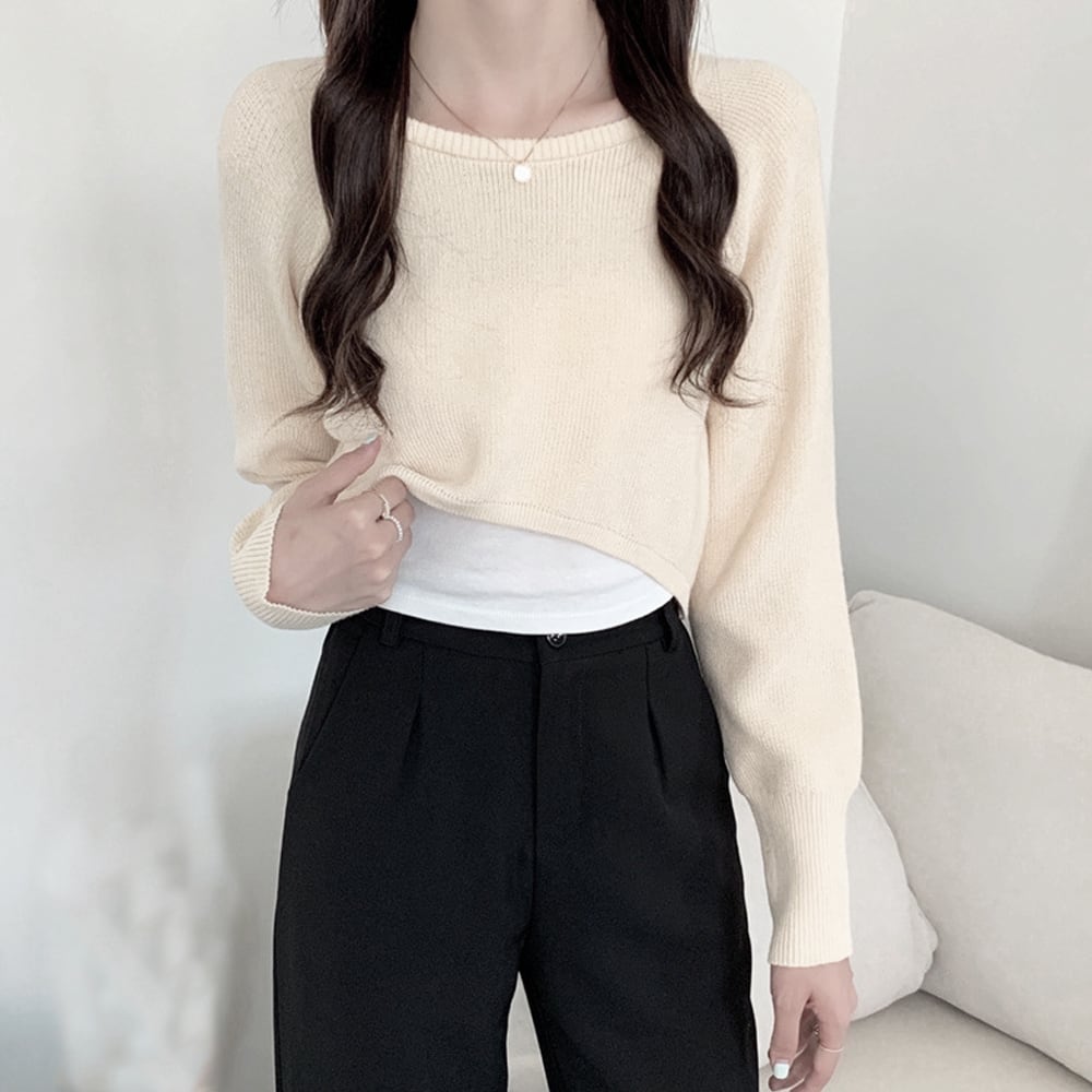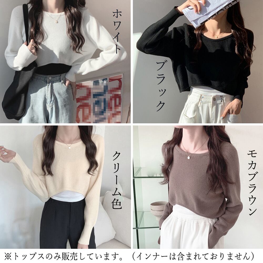 ショート丈トップス セクシー ラウンドネック 韓国風 カットソー 春秋冬 重ね着